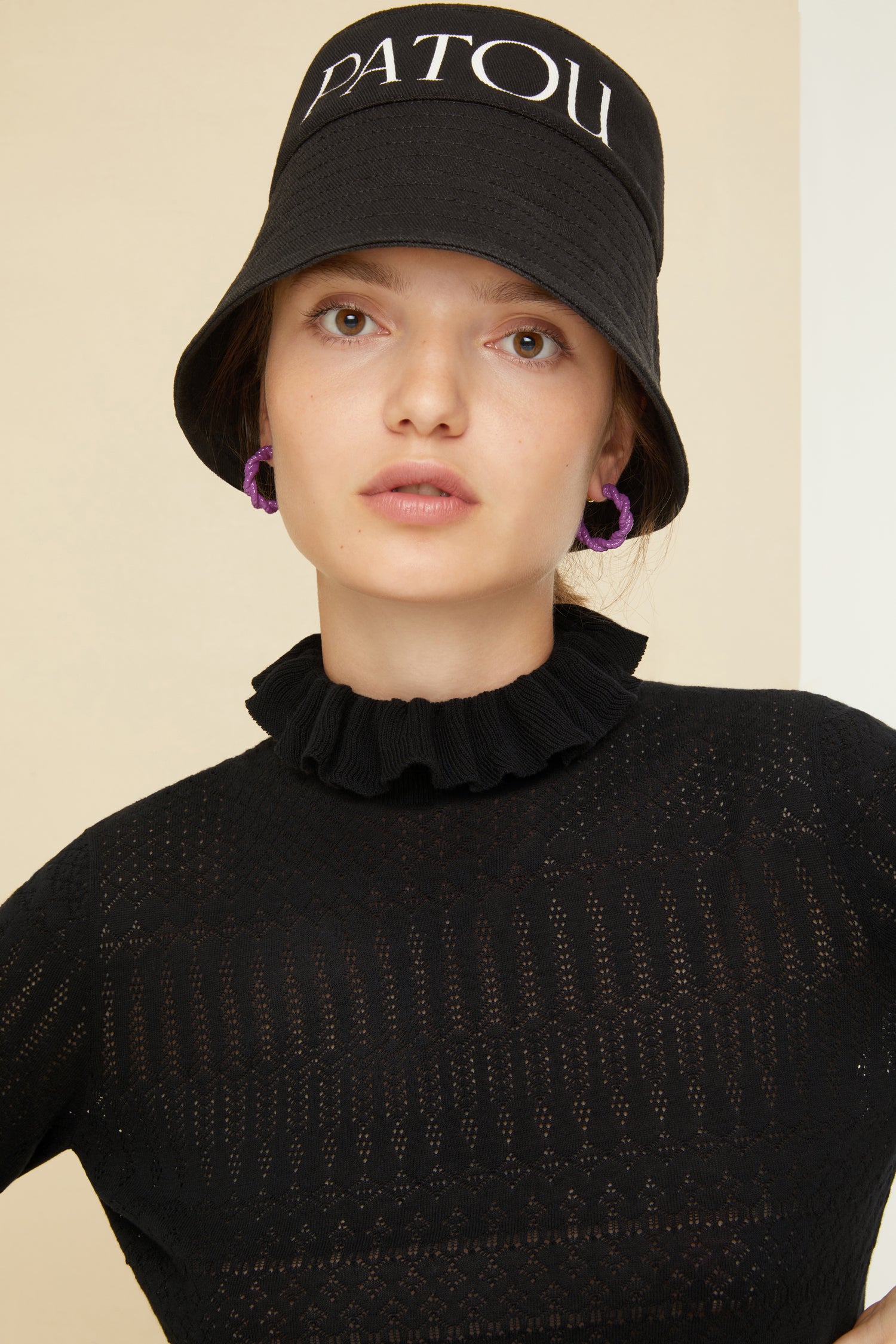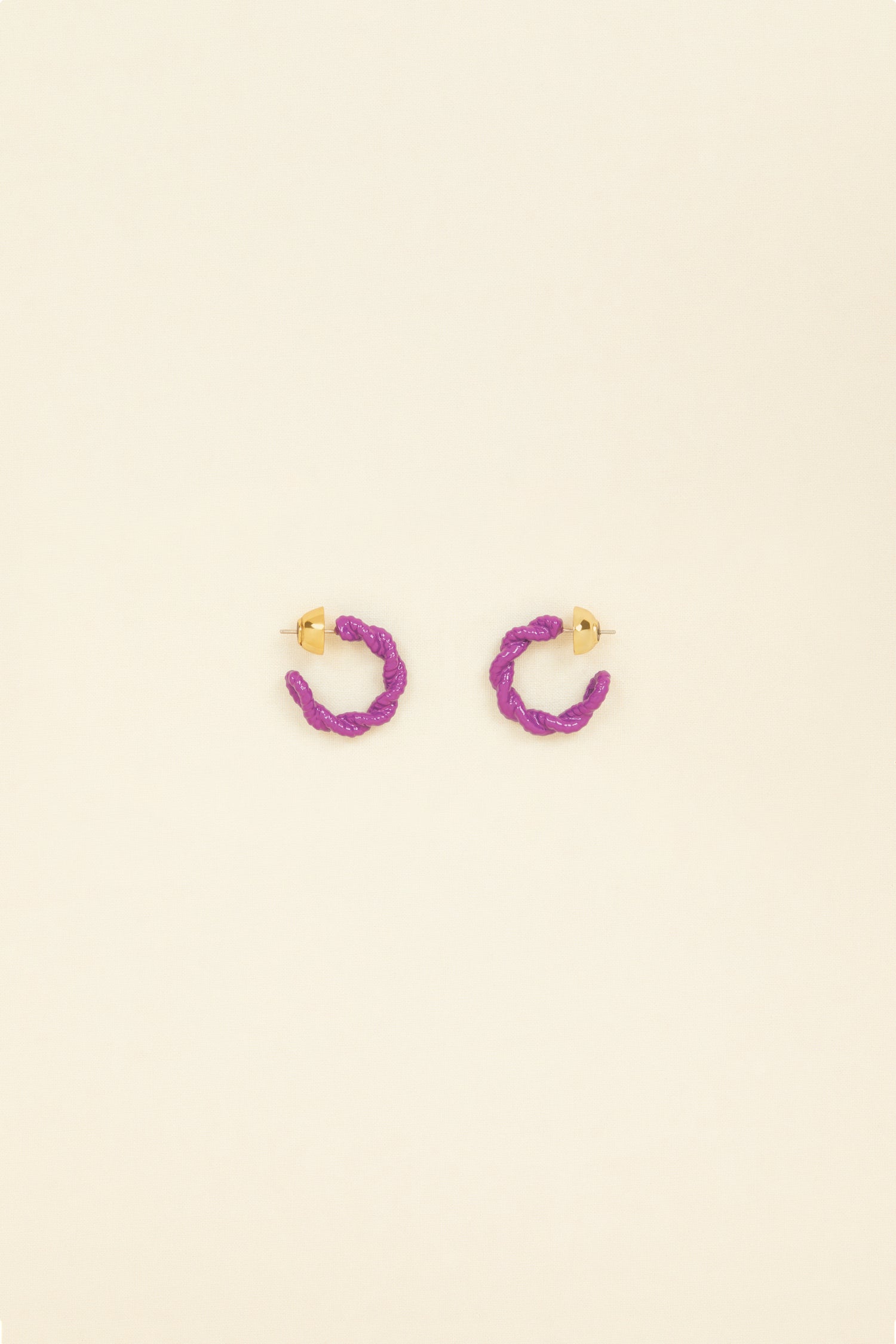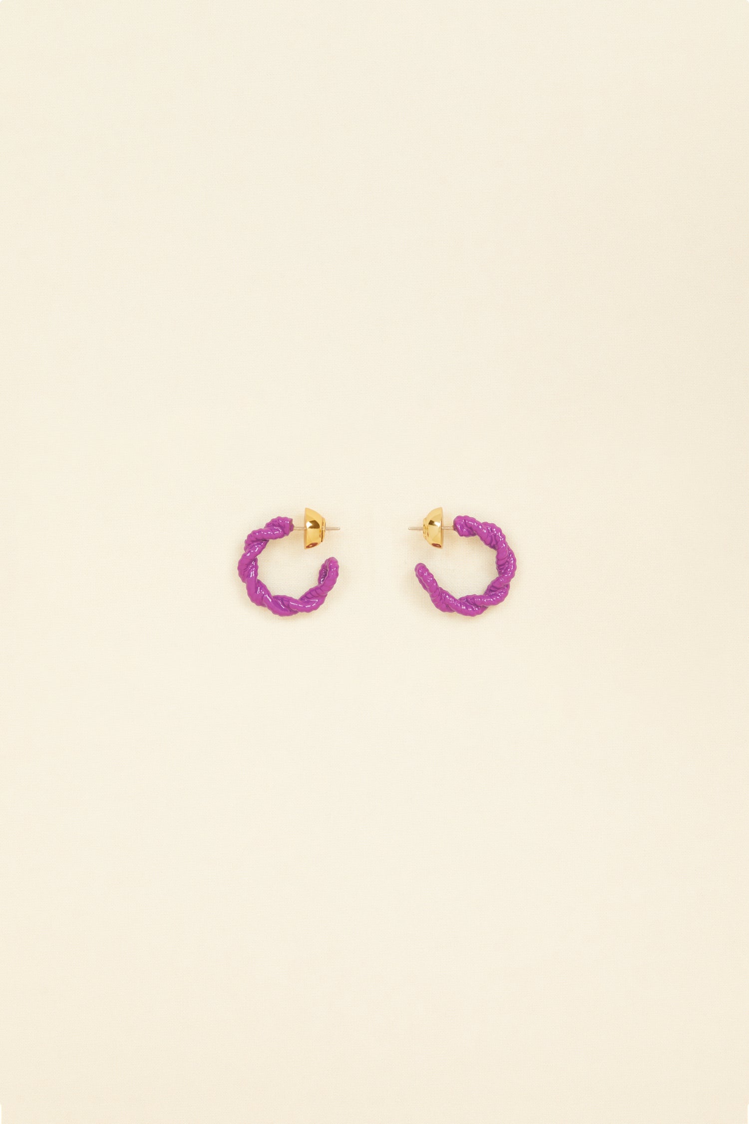 Anemone purple painted brass open hoop earrings. Bell back fastening suitable for pierced ears.
