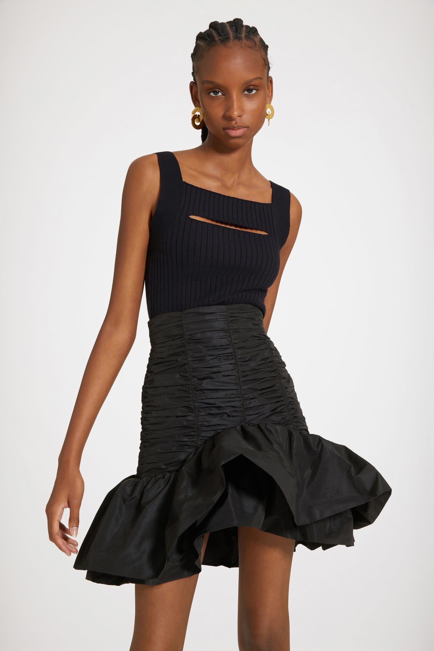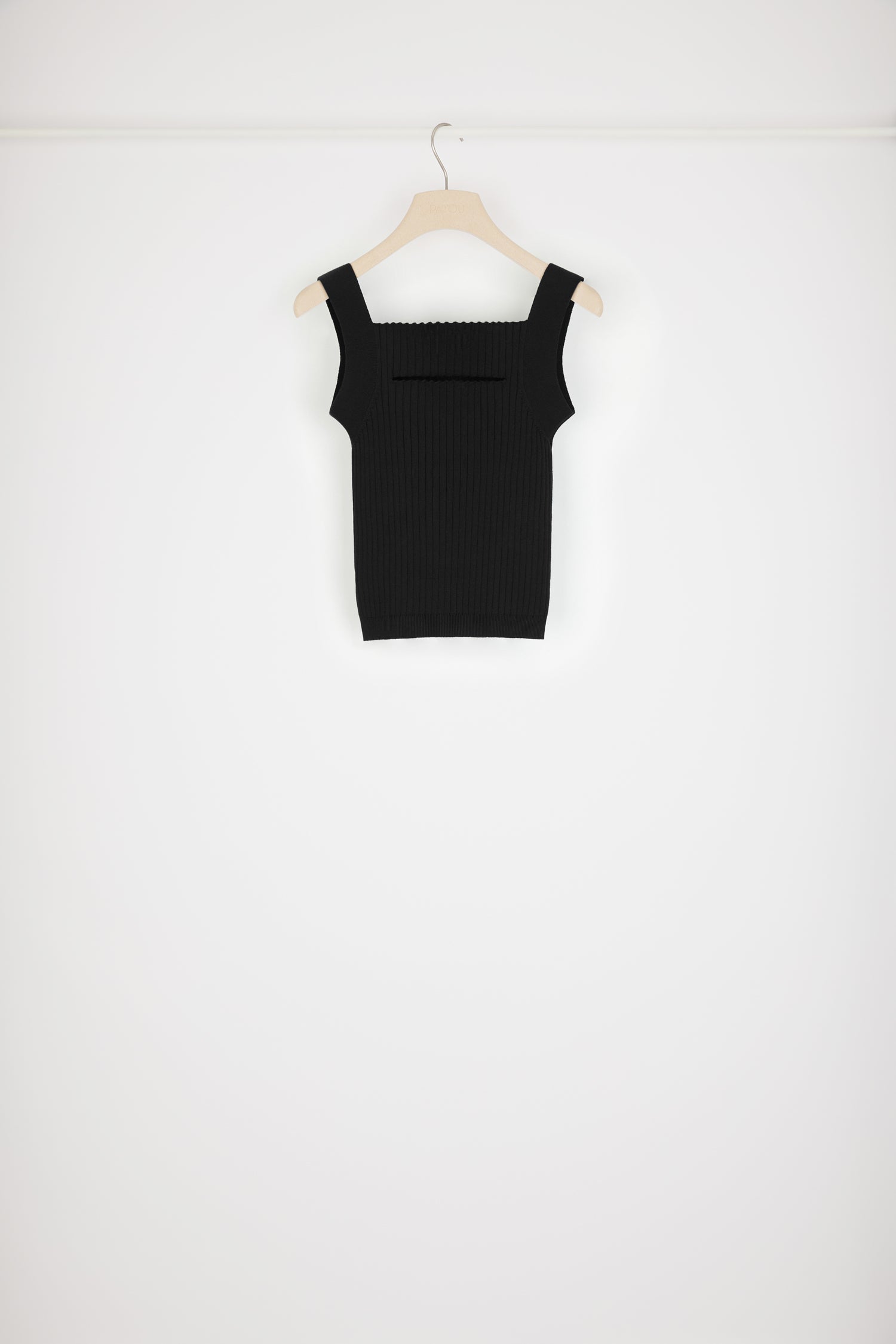Tanktop aus Bio-Baumwollmix in Schwarz. Rippstrick. Breite Träger. Breiter eckiger Halsausschnitt und Rückenteil. Cut-Outs vorne. Farblich abgestimmtes JP-Monogramm hinten.