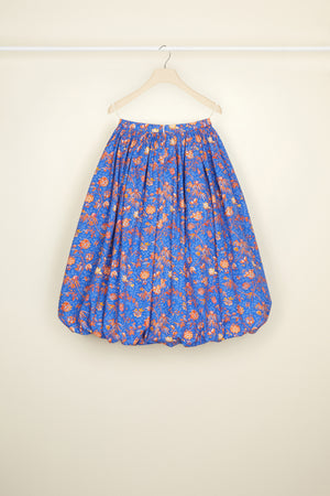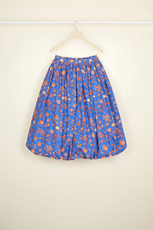 Der emblematische Ballonrock von Patou aus Bio-Baumwollpopeline mit dem charakteristischen Indienne-Blumenmuster in neuen, sommerlichen Farben. Reißverschluss hinten. Seitentaschen.