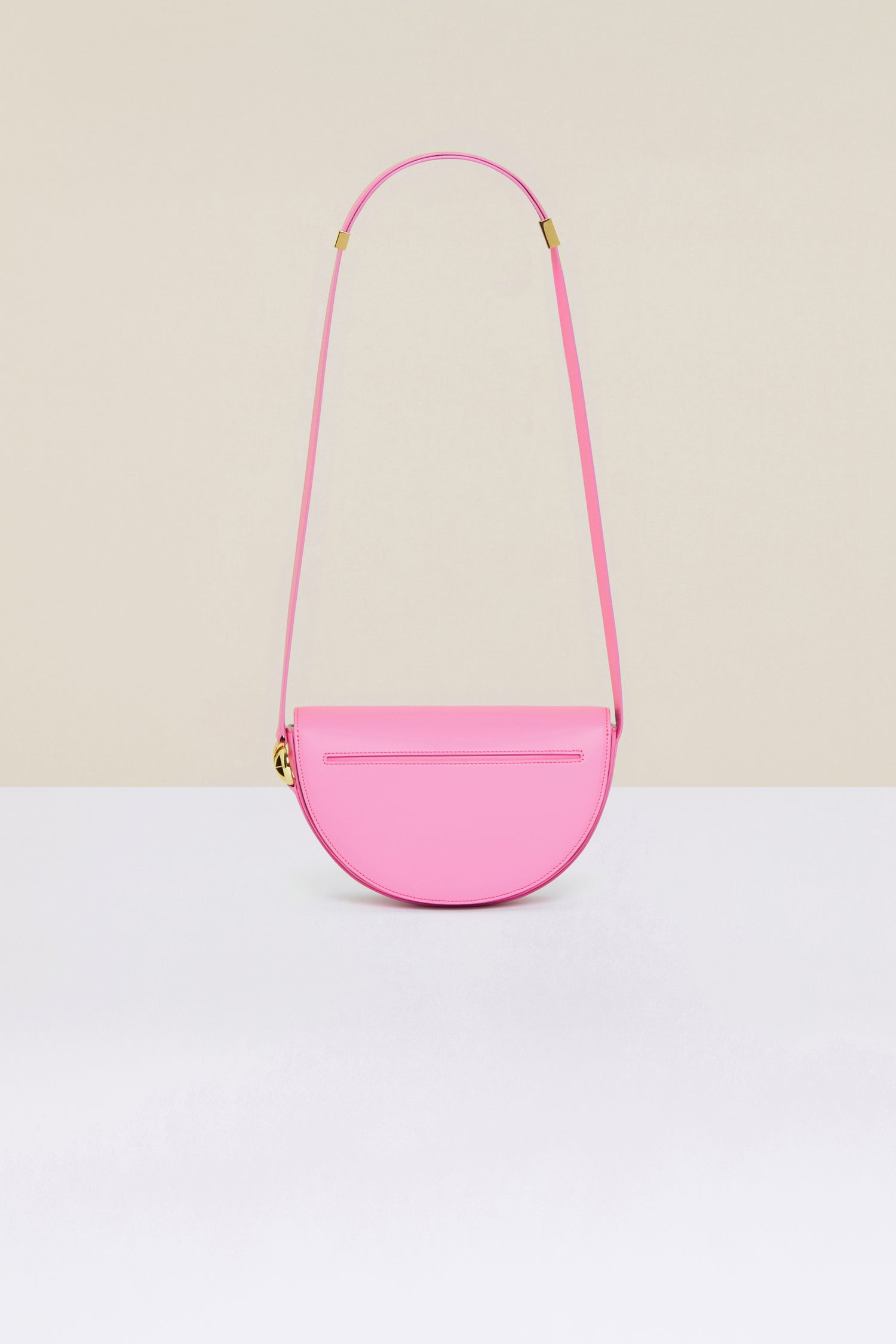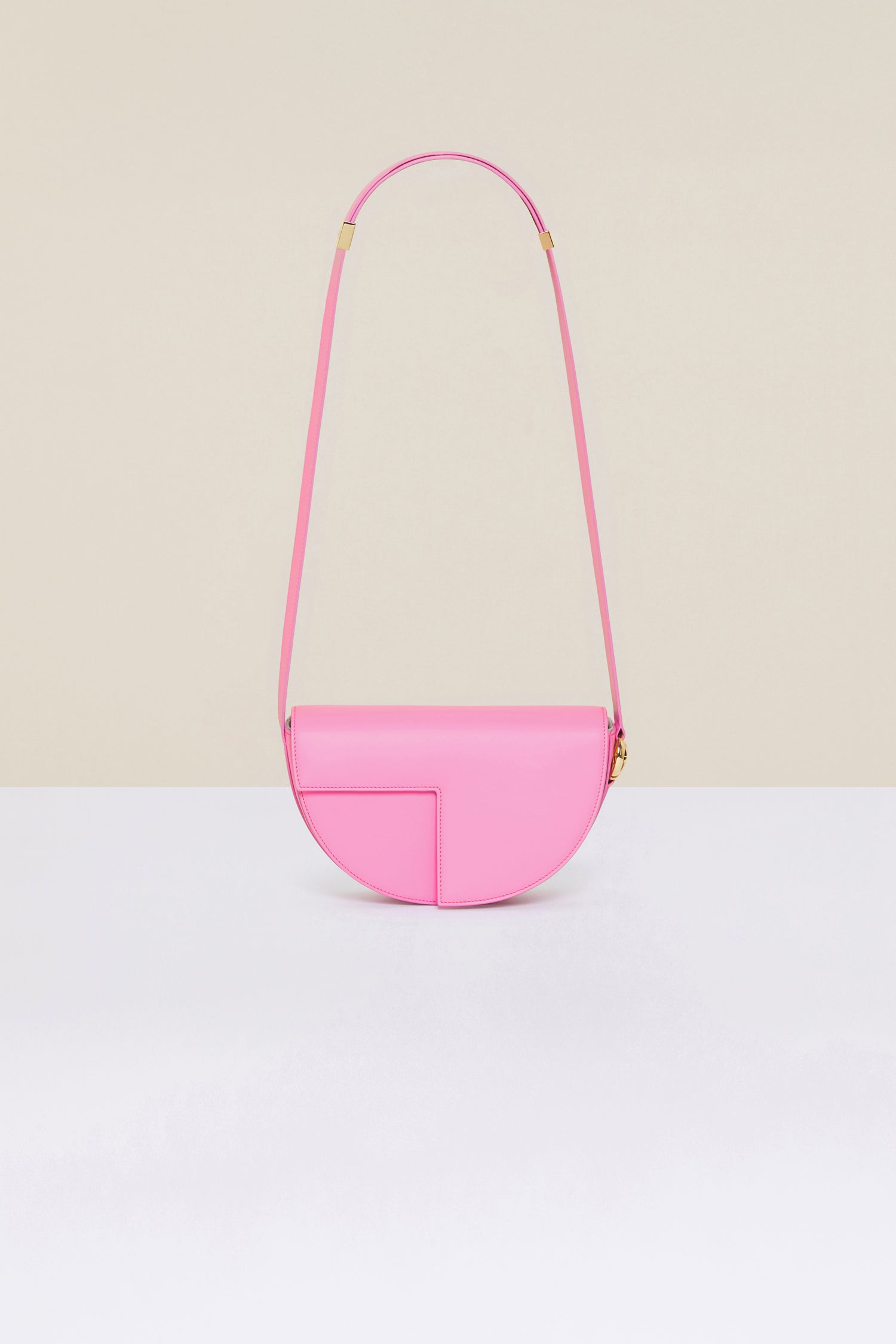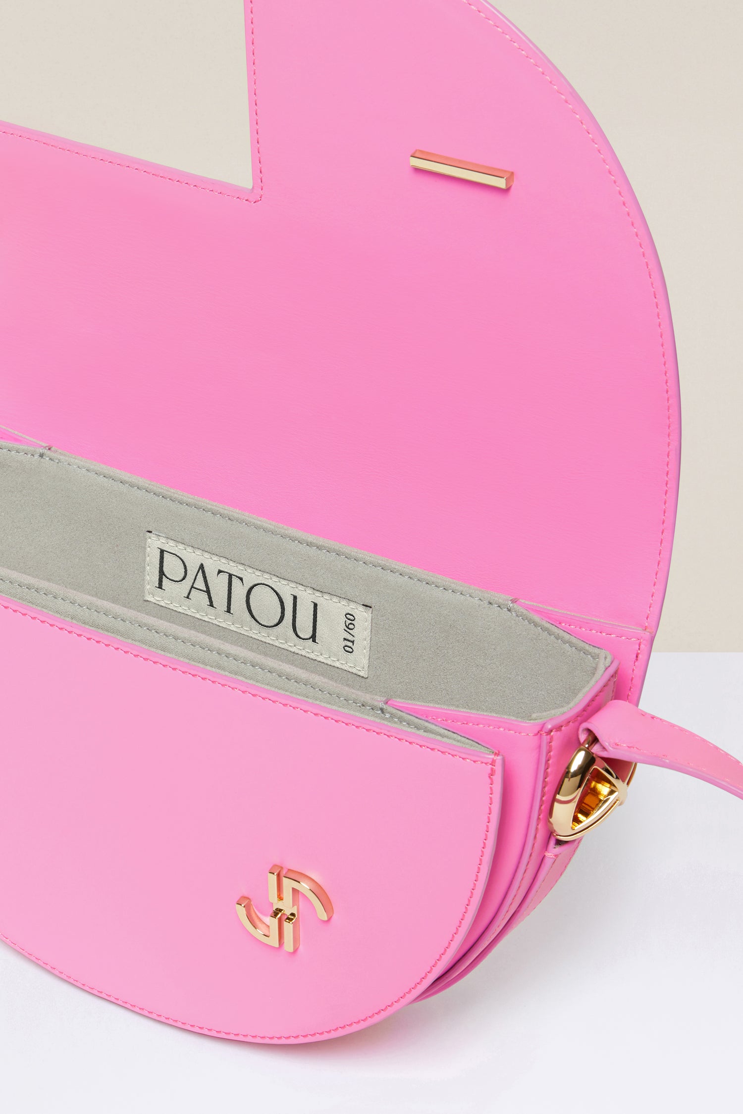 Handtasche aus Leder in Darling-Rosa. In limitierter Auflage, gefertigt aus einzigartigen Materialien, die nachhaltig aus unverwendeten Lederhäuten gewonnen wurden. 60 Exemplare in limitierter Auflage. Im Halbkreis-Format mit geometrischen, vom JP-Monogramm inspirierten Cut-Outs. Goldfarbene Metallelemente mit JP-Monogramm-Detail an der Seite. Verstellbarer Riemen zum Tragen über der Schulter, diagonal am Körper oder in der Hand. Magnetverschluss mit goldfarbenem JP-Detail. Mehrere Fächer auf der Innenseite. Innenfutter: Wildleder.