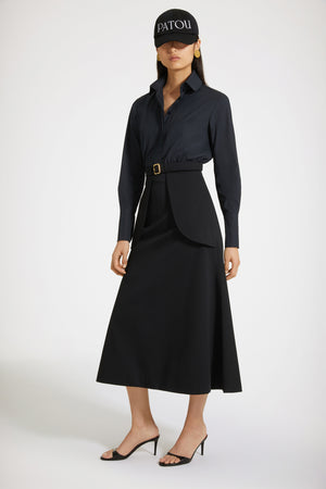 • Patou - Pocket midi skirt in organic cotton - Black - Statement pockets make for a sensational skirt.Black organic cotton gabardine skirt. Midi length. A-line construction. Adjustable belt at the waist with gold-tone buckle and belt loops. Maxi pockets at the front. V seam and darts at the back. Tonal topstitching. Spring-Summer 2023 Show - Look #06