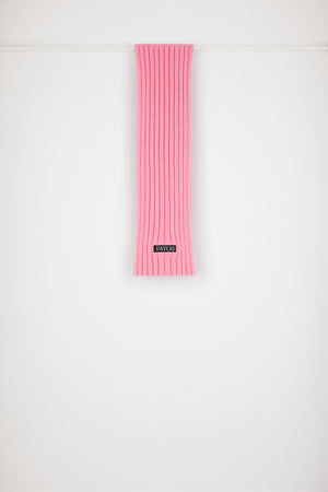 Darling Pink wool scarf. Thick ribbing. Black Patou label.