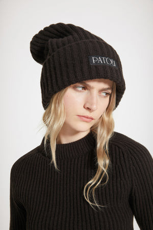 • Patou - Patou beanie in wool and cashmere - Chocolate - Hip hip hip, Patou!Chocolate brown wool and cashmere beanie. Rib knit. Patou label.