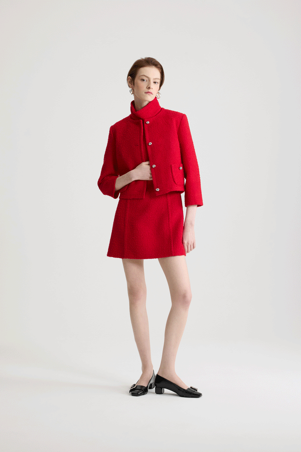 Veste longiligne à boutonnage simple en tweed de laine mélangée éco-responsable