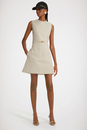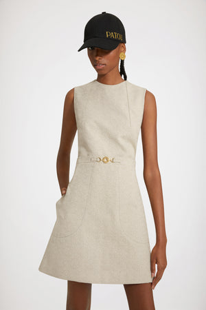 Robe en jacquard de coton bio. Motif Médaillon composé de logos Patou et monogrammes JP. Silhouette ajustée, coupe évasée. Encolure ronde. Pinces à l'avant et au dos. Zip au dos. Médaillon doré gravé Patou à la taille. Poches latérales.