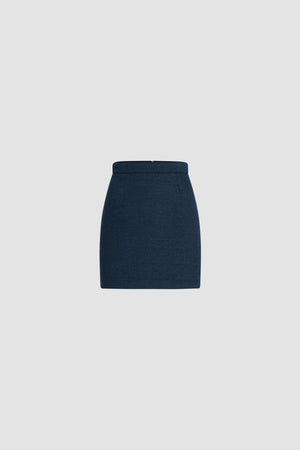 Jupe en tweed de coton bio noir marine. Modèle court. Taille haute. Fermeture par zip au dos. Pinces sur le devant et au dos. Modèle doublé.
