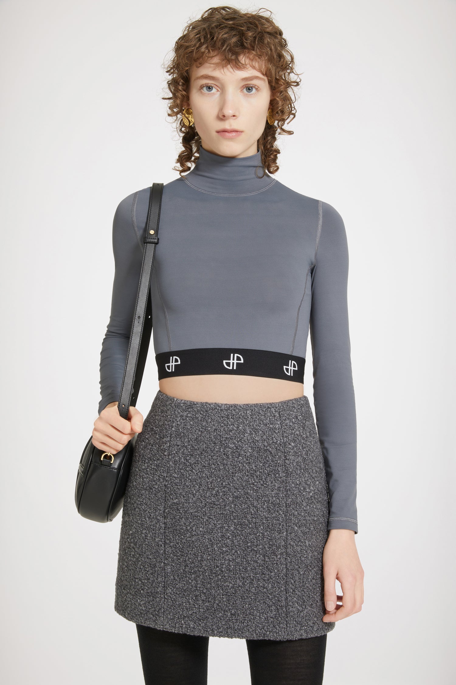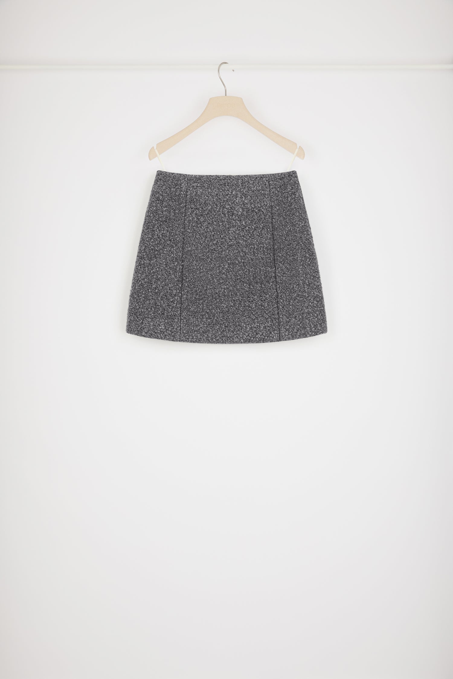 Jupe en laine bouclée mélangée gris anthracite. Taille haute. Modèle court. Zip au dos.