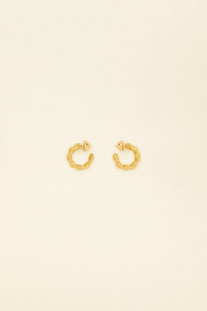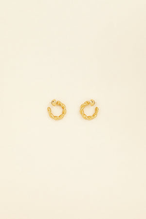 Créoles ouvertes en laiton doré à l’or fin. Modèle tressé. Convient aux oreilles percées.