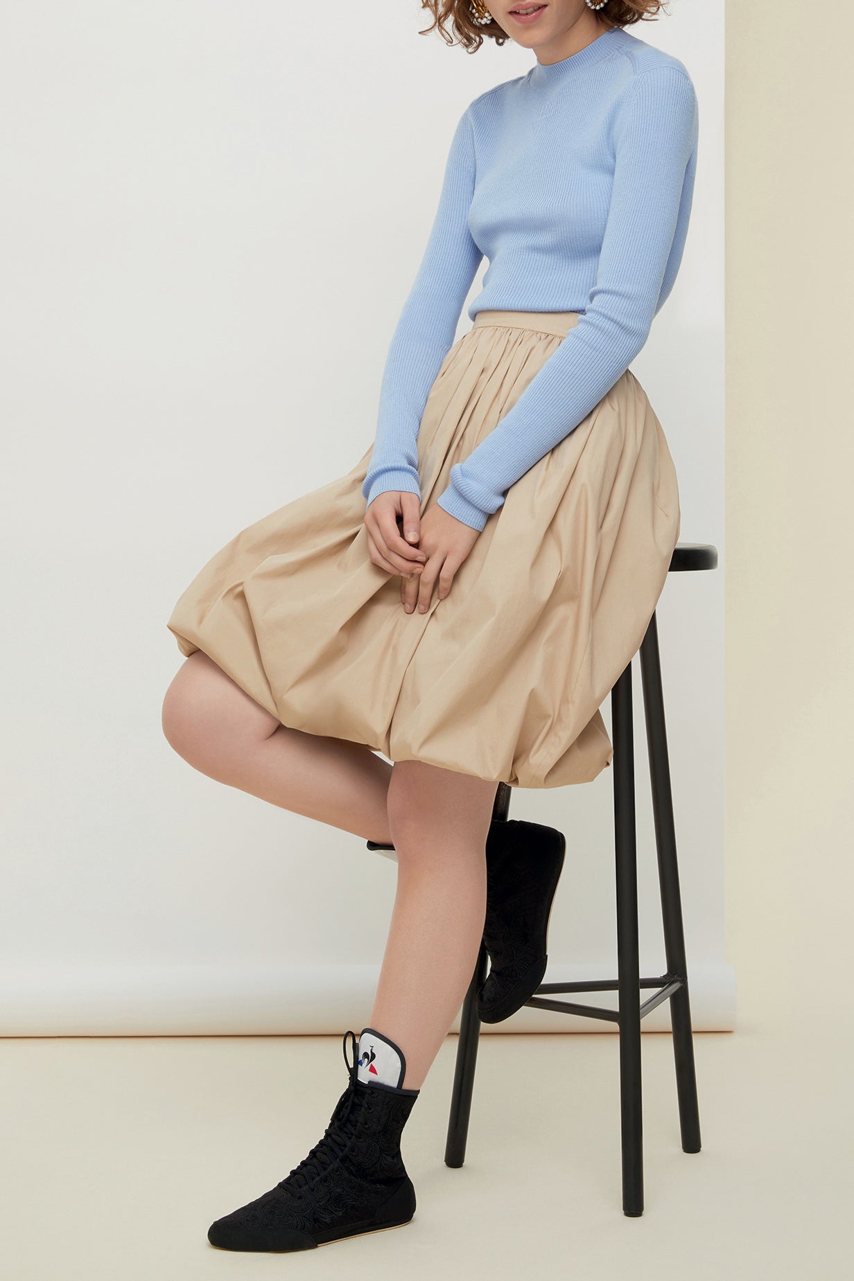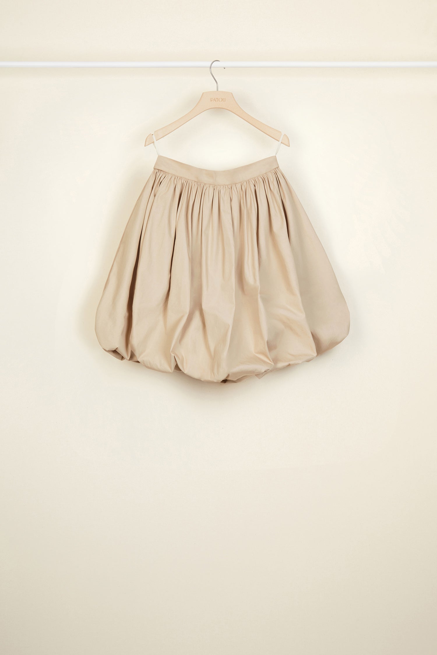 Jupe en coton mélangé sable. Silhouette boule volumineuse. Fermeture par glissière à l'arrière. Poches latérales.