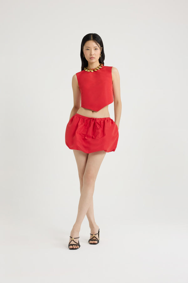 Robe boule courte asymétrique en ottoman imprimé recyclé