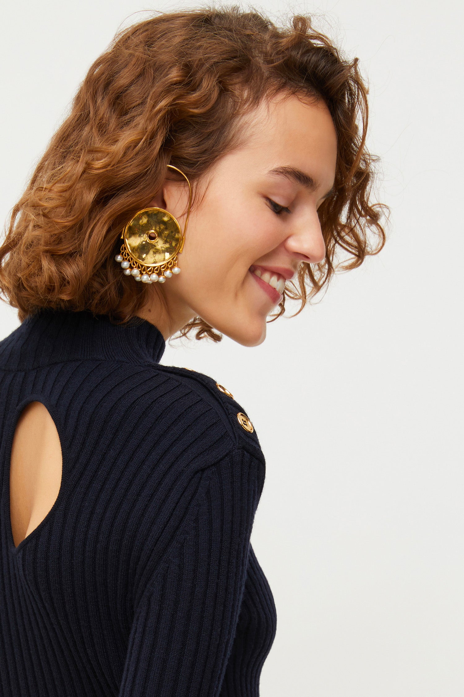 • Patou - Boucles d'oreilles sphères en laiton et perles - Gold - L'or et les perles habillent l'oreille.  Boucles d'oreilles en laiton doré à l'or fin et perles. Sphère en laiton martelé au centre bordée de perles. Modèle clip.