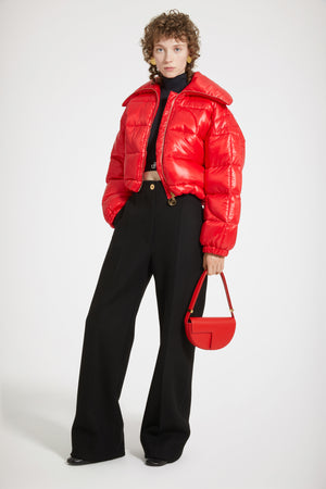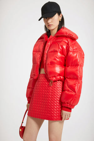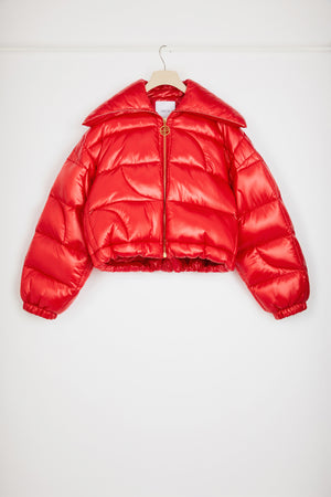 Veste en polyamide éco-responsable rouge. Modèle rembourré à coupe courte. Col montant. Zip doré avec tirette JP signature. Maxi JP matelassé au dos. Poches latérales. Taille coulissée. Poignets élastiqués.
