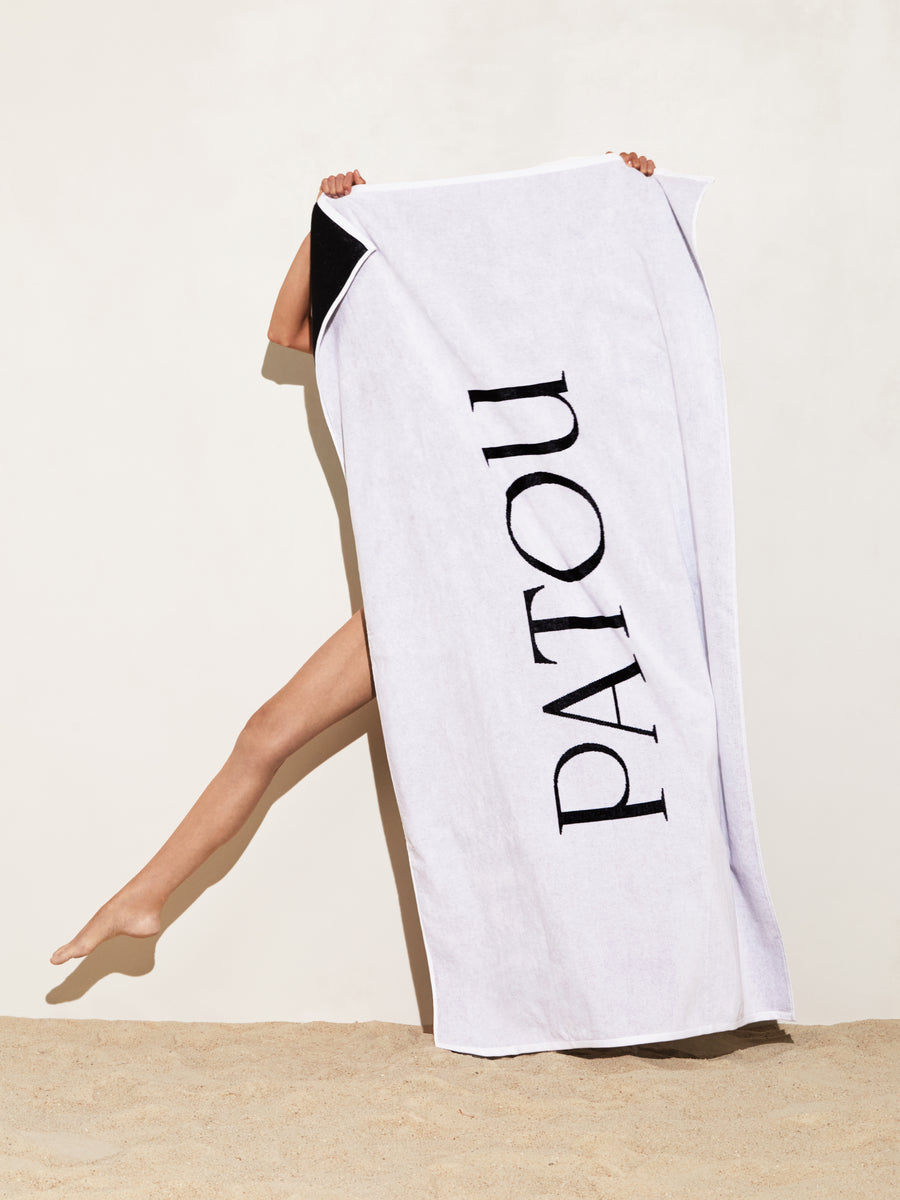 A one piece swimsuit, a large hat, a towel and sandals with pompoms: here's the perfect outfit for a chic and sunny break "à la Patou"!