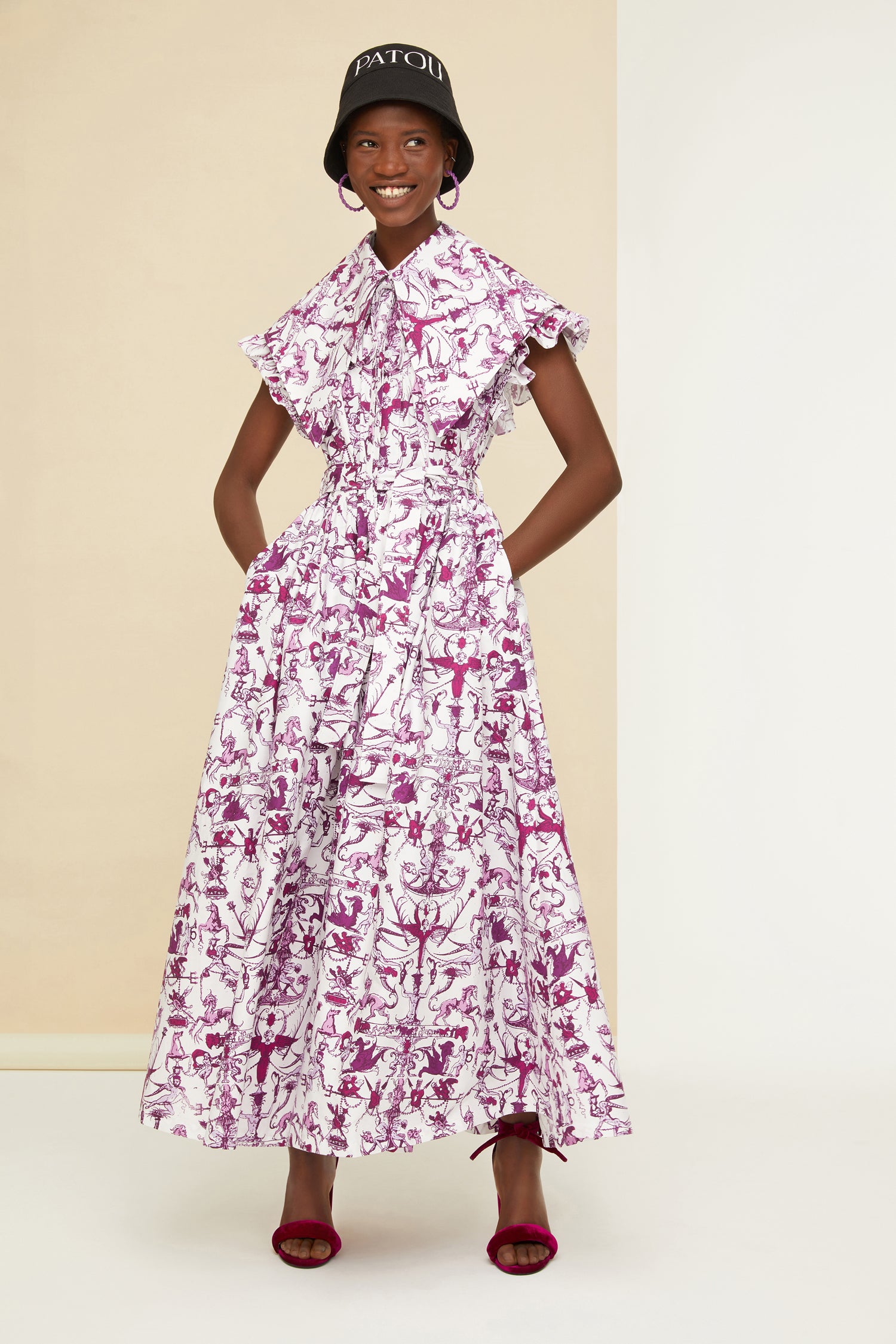 Robe en popeline de coton bio. Imprimé « Contes et Légendes ». Longueur maxi. Manches courtes avec détails de volants. Encolure arrondie. Boutonnage à l'avant avec boutons gravés JP. Ceinture à la taille.