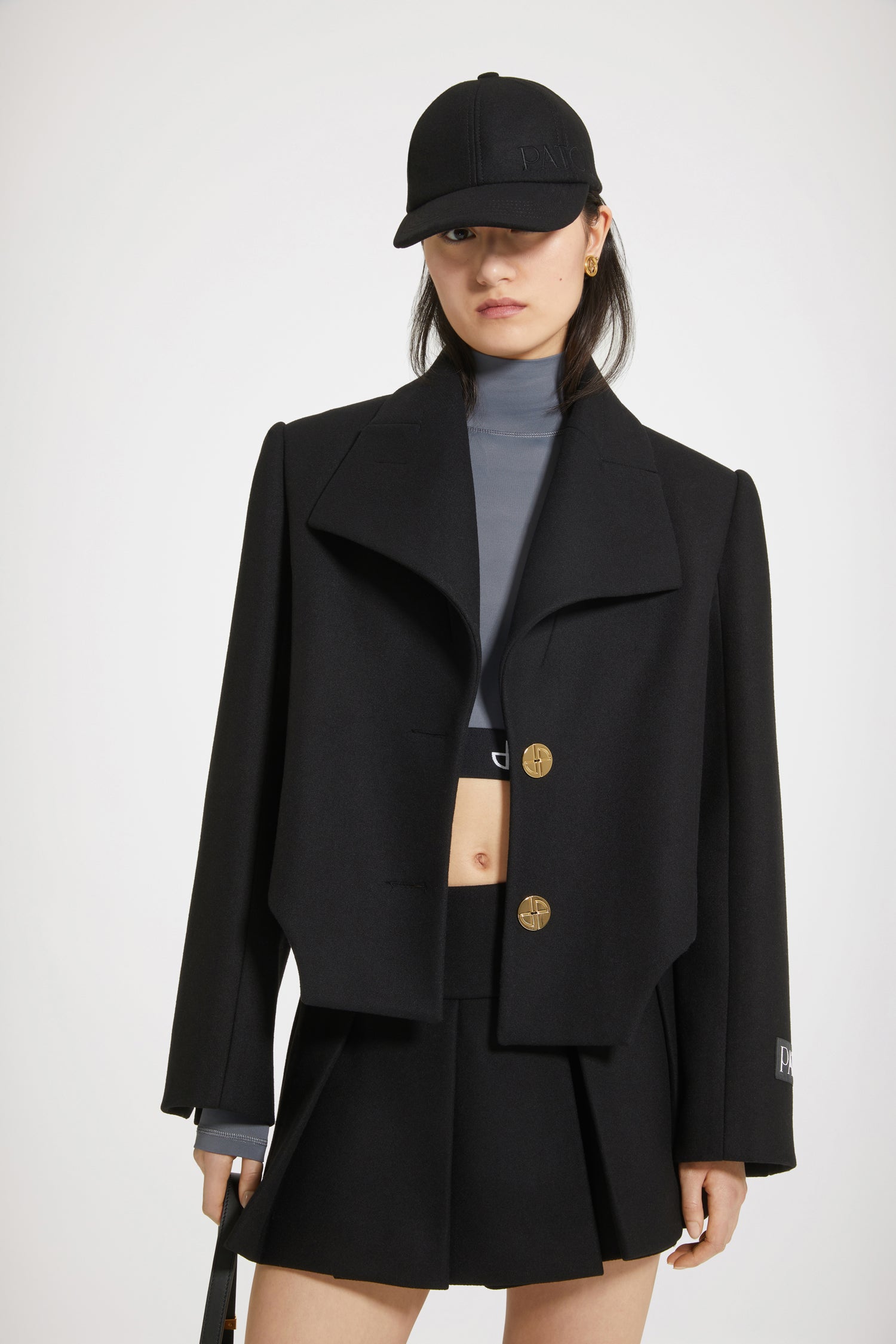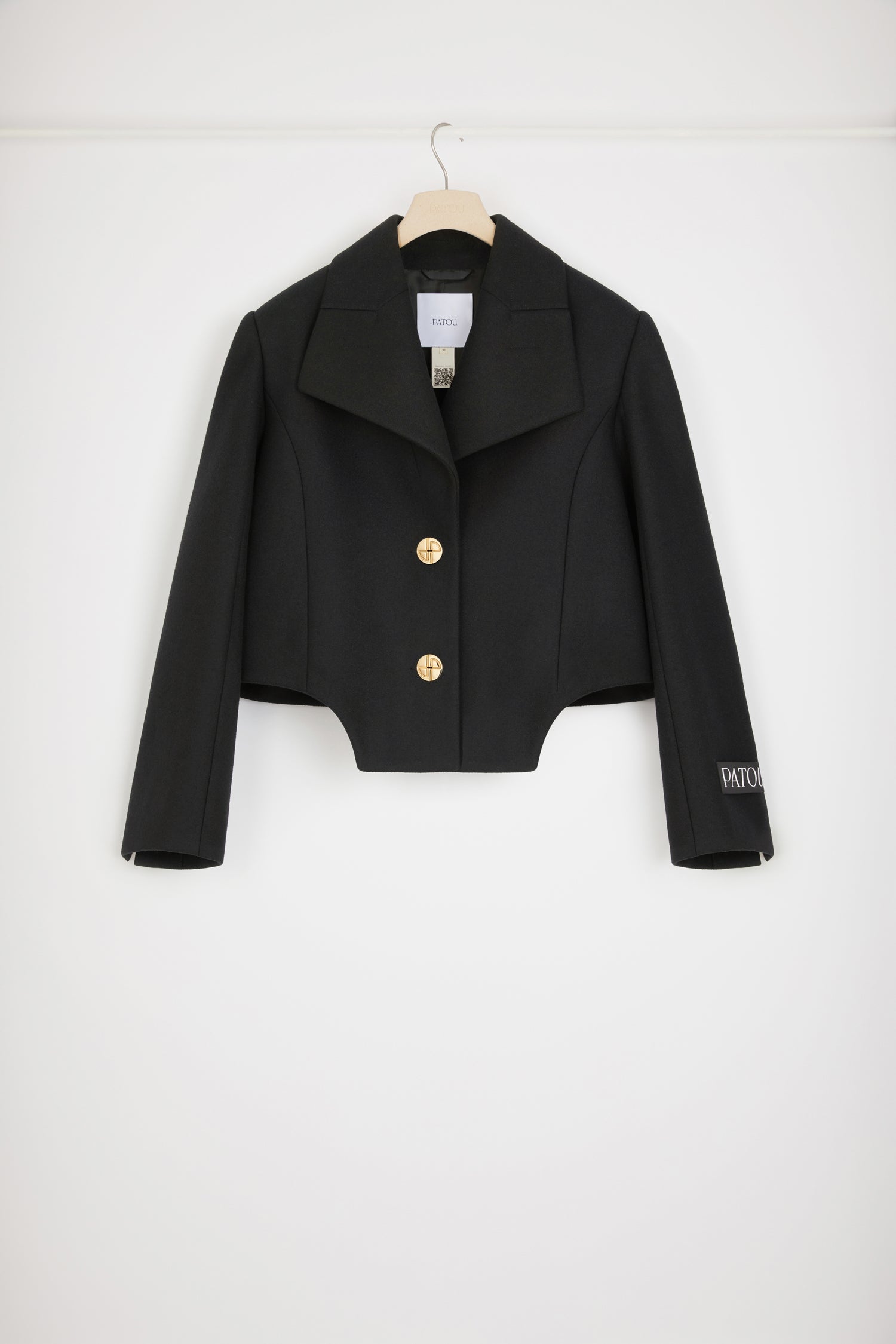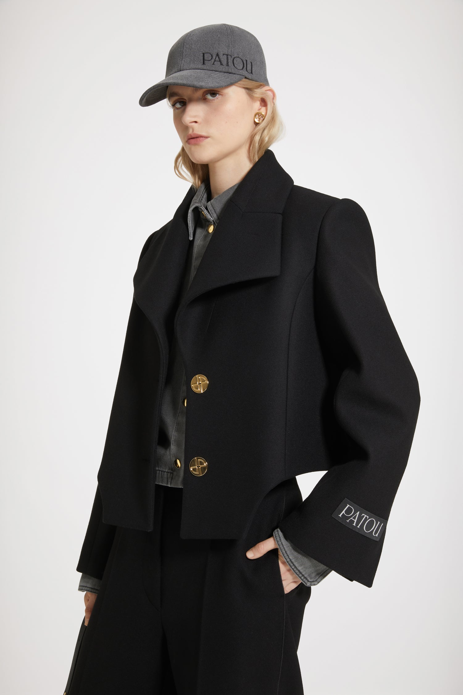 • Patou - Veste courte à découpes en feutre de laine mélangée - Black - Le veste noire se découpe et se réinvente.Veste en feutre de laine mélangée noire. Coupe courte avec découpes violon sur les côtés. Larges revers. Épaulettes. Boutons dorés gravés JP d'inspiration Art Déco. Poignets à boutonnage caché. Étiquette Patou sur la manche gauche. Ganse satin à l'ourlet. Entièrement doublée.