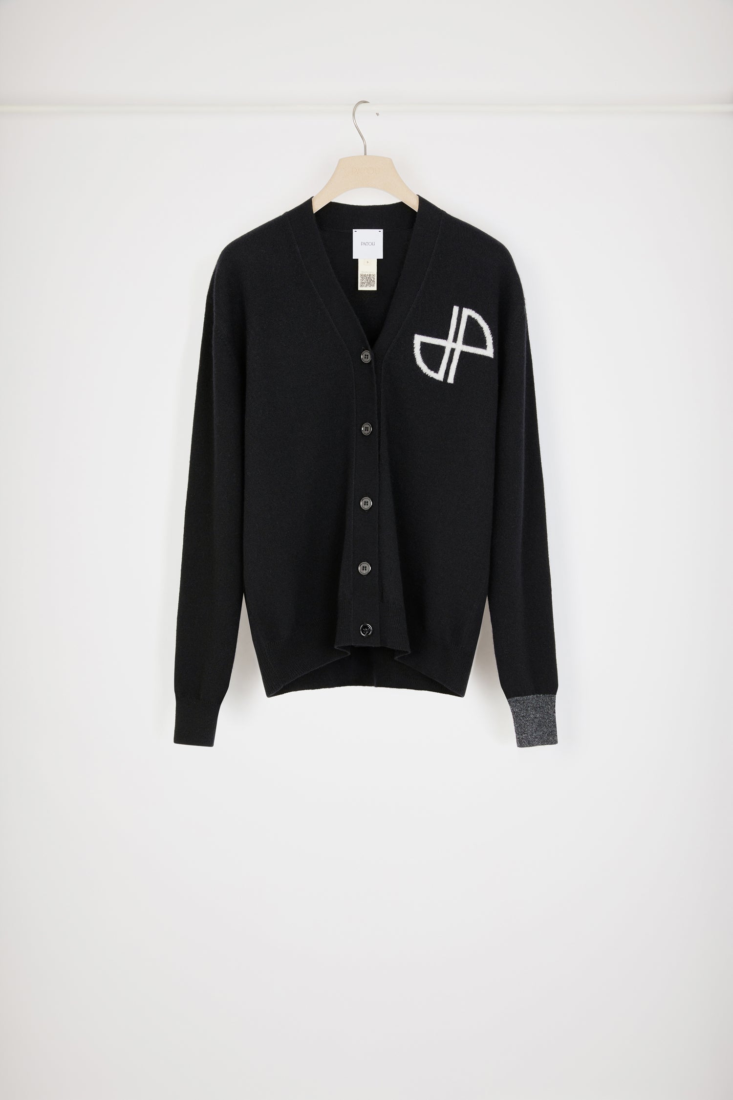 Maglione in misto lana e cachemire rosso dalia. Vestibilità rilassata. Scollo a V. Bottoni incisi JP. Monogramma JP sul petto. Polsino a contrasto.