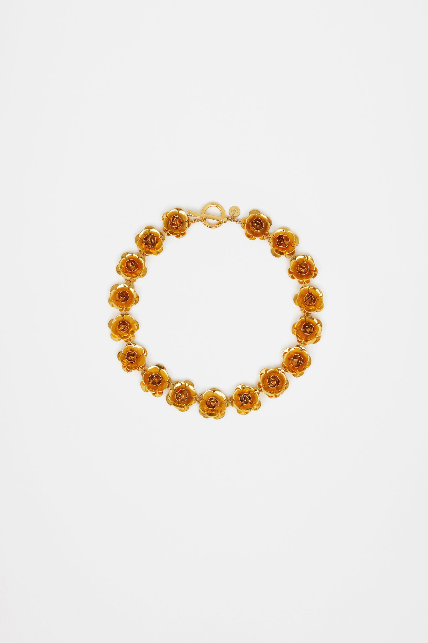 Collana oro. Forma di fiore. Medaglia incisa JP. Chiusura a T.