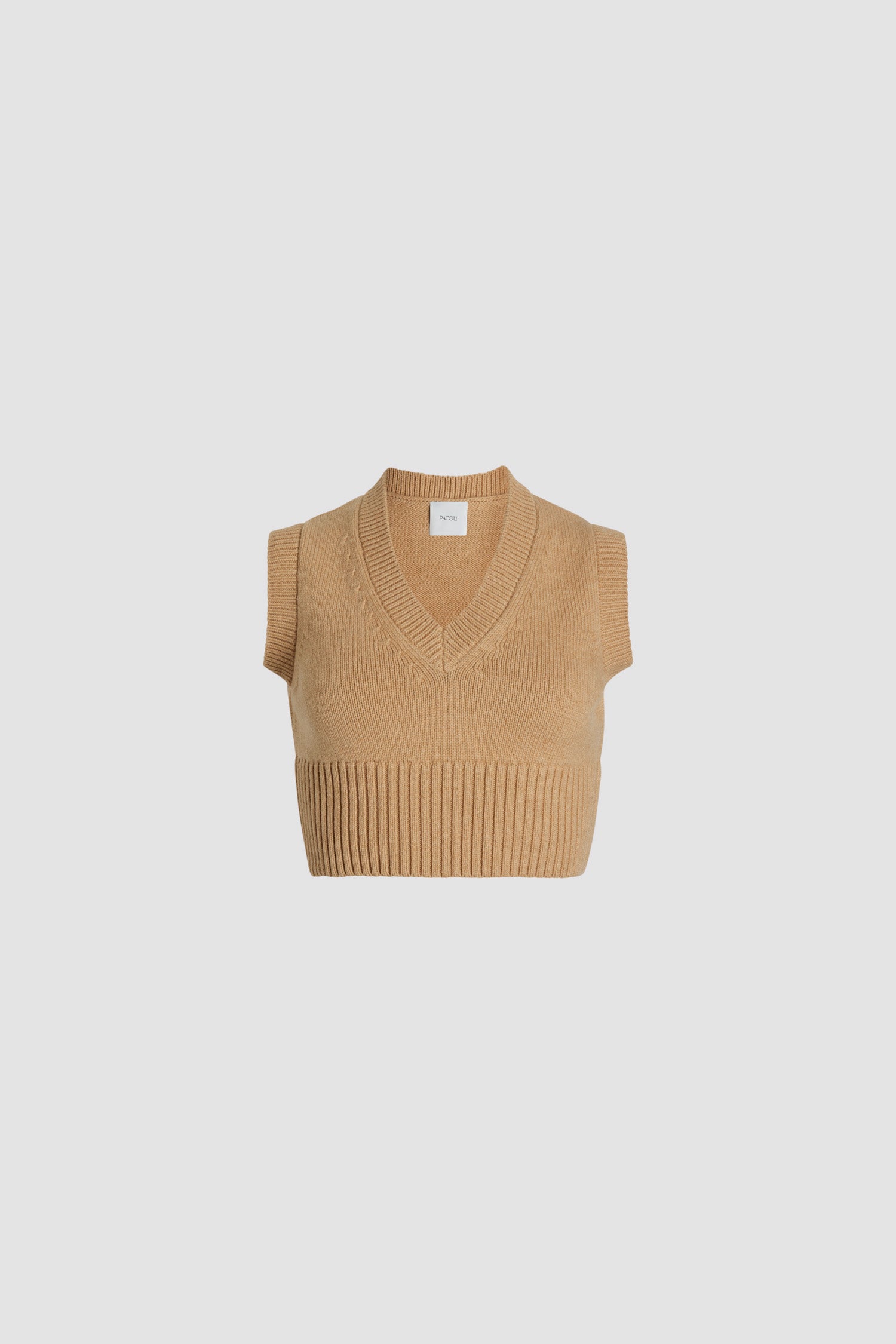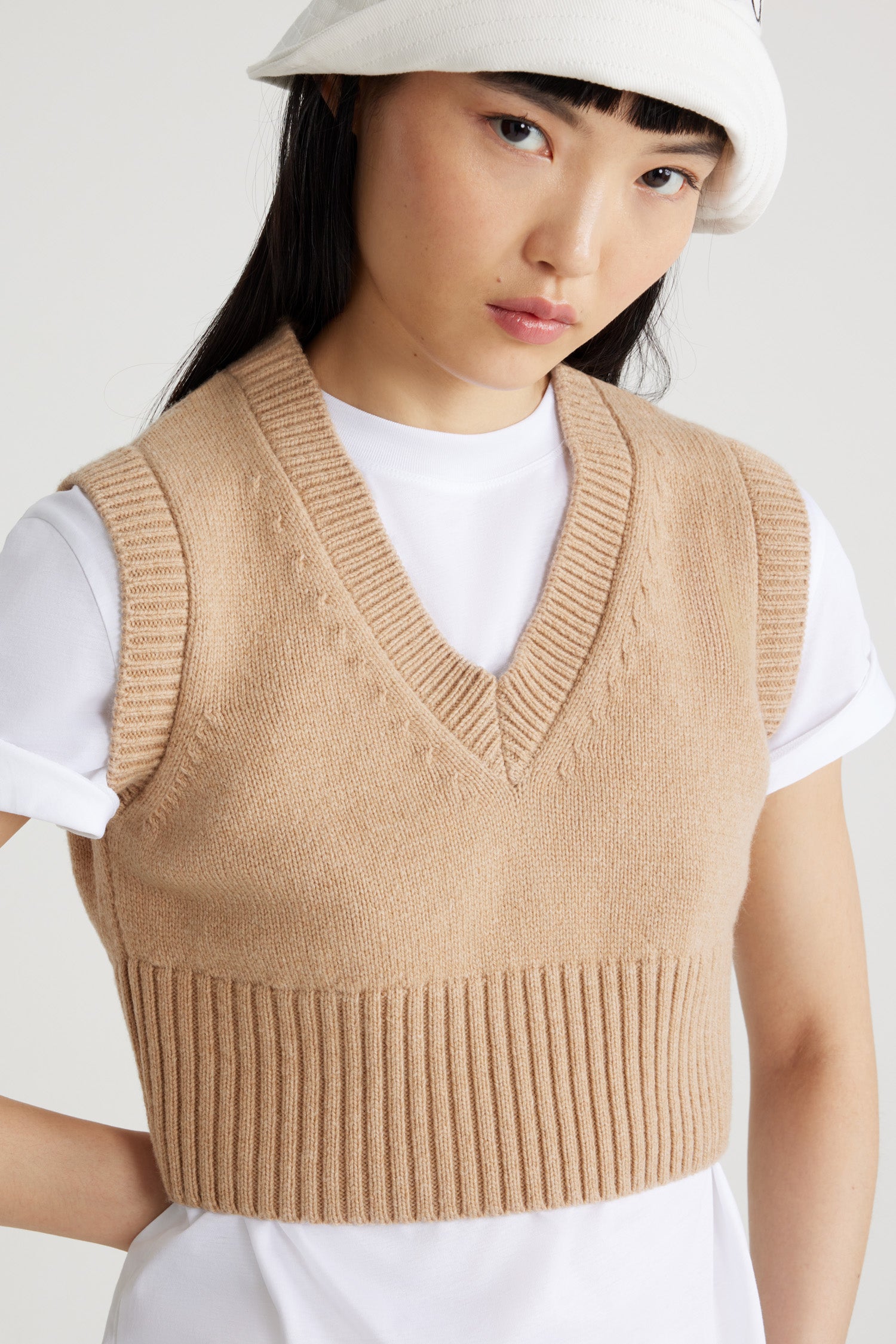 Maglione smanicato corto in misto lana e cachemire ecosostenibile