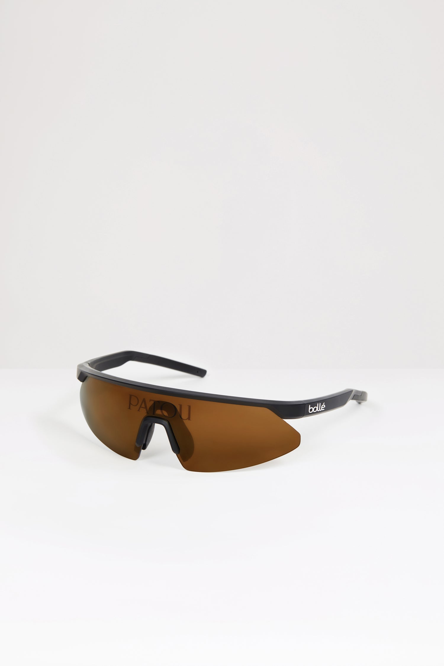 Occhiali da sole neri. Da una collaborazione esclusiva con Bollé, esperti francesi degli occhiali ad alta performance. Lente antiriflesso UV 400. Trasmissione luminosa: 11-13%. Montatura iperleggera e regolabile. Effetto specchio. Patou sulla lente, logo Bollé sull'asta.