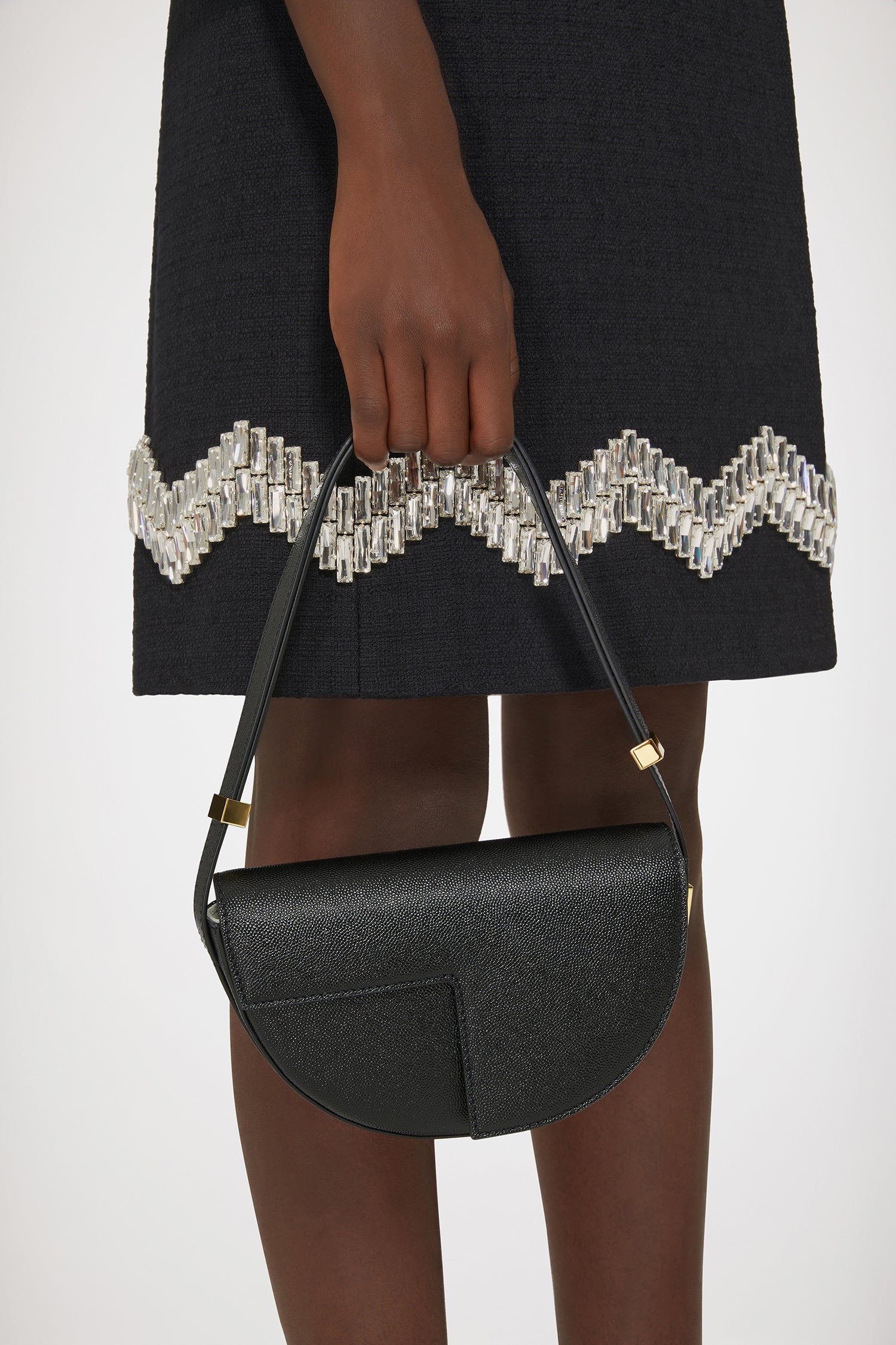 • Patou - Borsa Le Petit Patou - Black - Petit Patou, grande stile.Borsa in pelle nera. Realizzata con pellami recuperati dal ciclo di produzione. Edizione limitata e numerata di 120 esemplari. Forma a mezzaluna con tagli geometrici ispirati al monogramma JP. Dettaglio in metallo oro inciso Patou al lato. Tracolla regolabile che permette di indossarla in più modi: in spalla, crossbody o a mano. Chiusura magnetica con dettaglio JP oro. Fodera eco-friendly.Dimensioni : lunghezza: 20 cm; altezza: 13 cm; larghezza: 5 cm