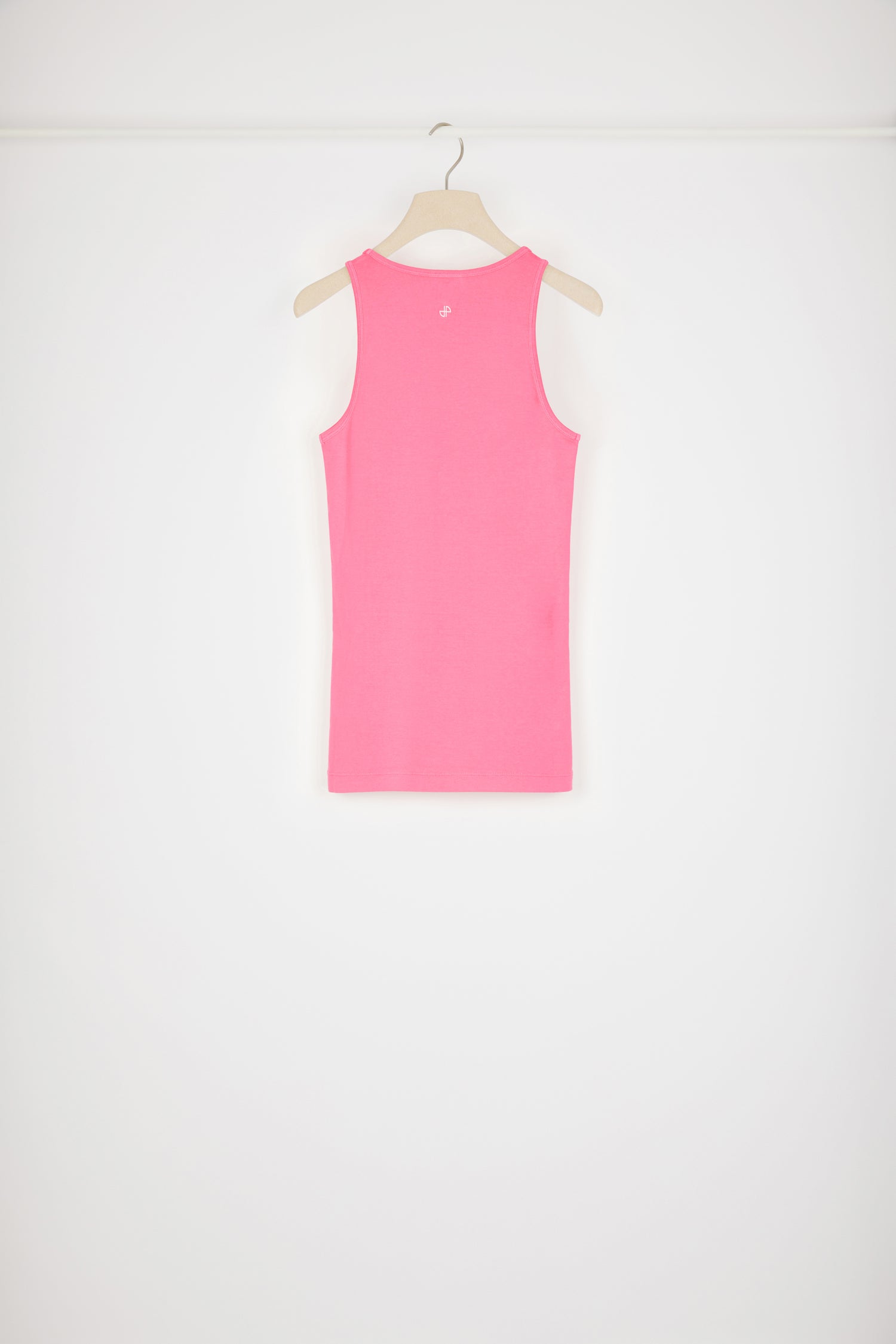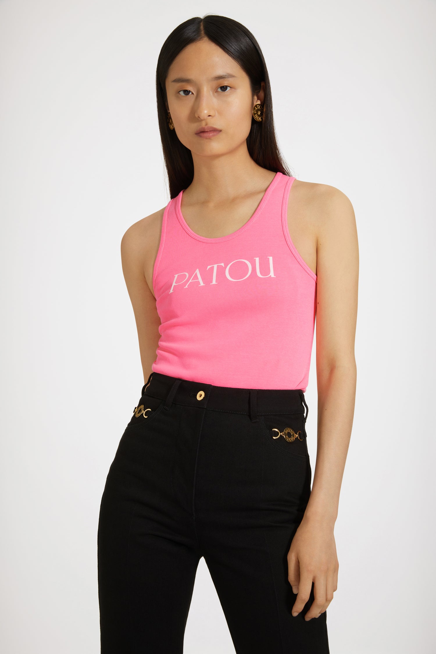 Canotta in cotone bio rosa begonia. Logo Patou stampato sul davanti, monogramma JP sul retro.