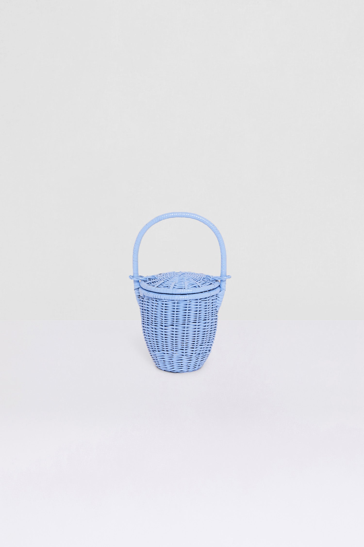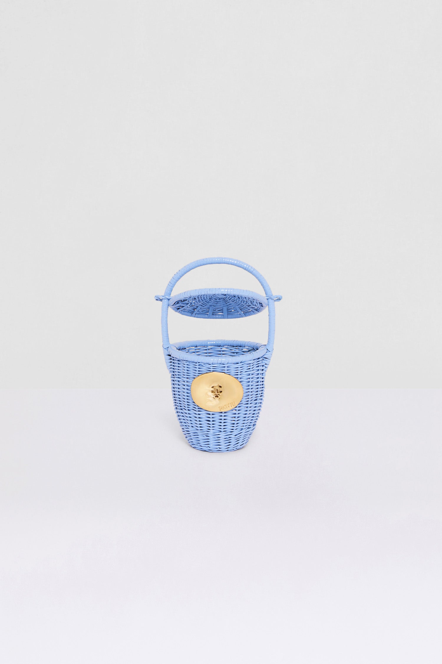 • Patou - Borsa a secchiello in vimini - Aurora - Lo știe Patou a portata di mano, in tutti i colori dell’arcobaleno!Borsa a secchiello in vimini color celeste . Maniglia con coperchio scorrevole. Decorazione oro ispirata alla Bocca della Verità.Questo cestino è stato realizzato artigianalmente. Può pertanto presentare delle irregolarità.