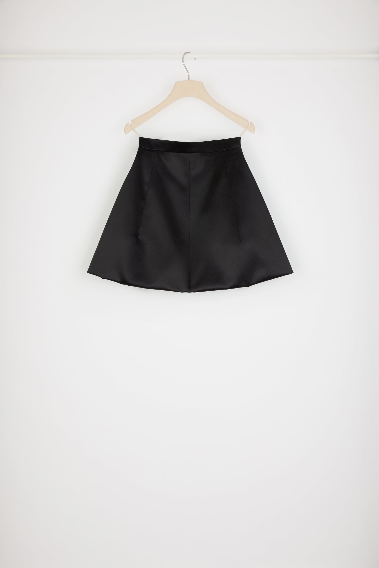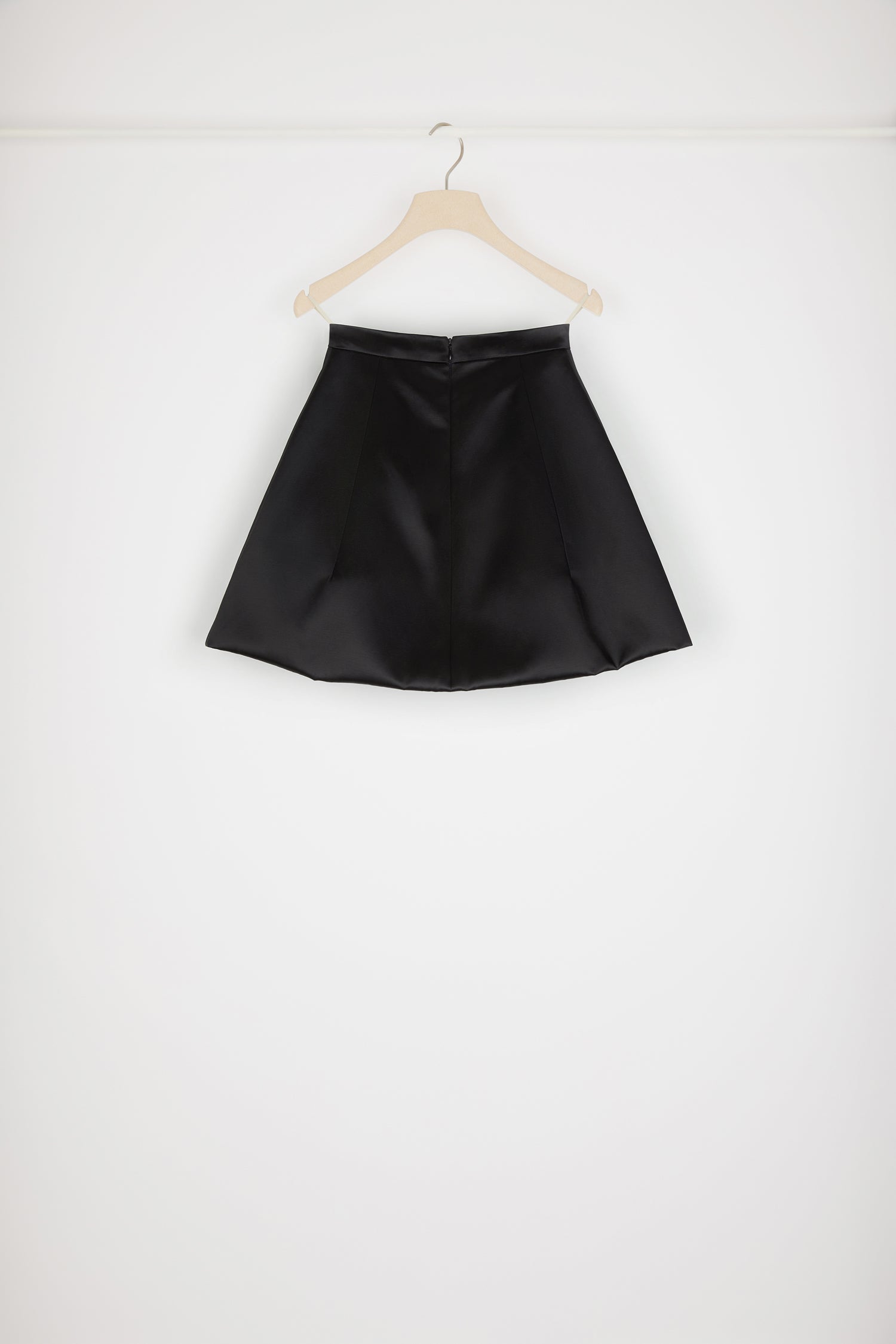 Gonna in raso di misto cotone rosa camelia. Lunghezza mini. Vita alta. Zip sul retro. Orlo doppio.
