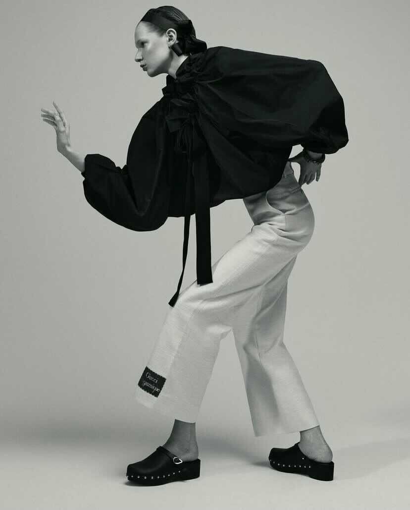 Grazie ai suoi cordoncini in grosgrain, può essere indossata liberamente sulle spalle o stretta a girocollo — un gioco di forme e volumi a seconda dei desideri. Femminile, versatile e intramontabile, la Blusa Patou esalta ogni morfologia con quell'eleganza naturale propria della Maison.