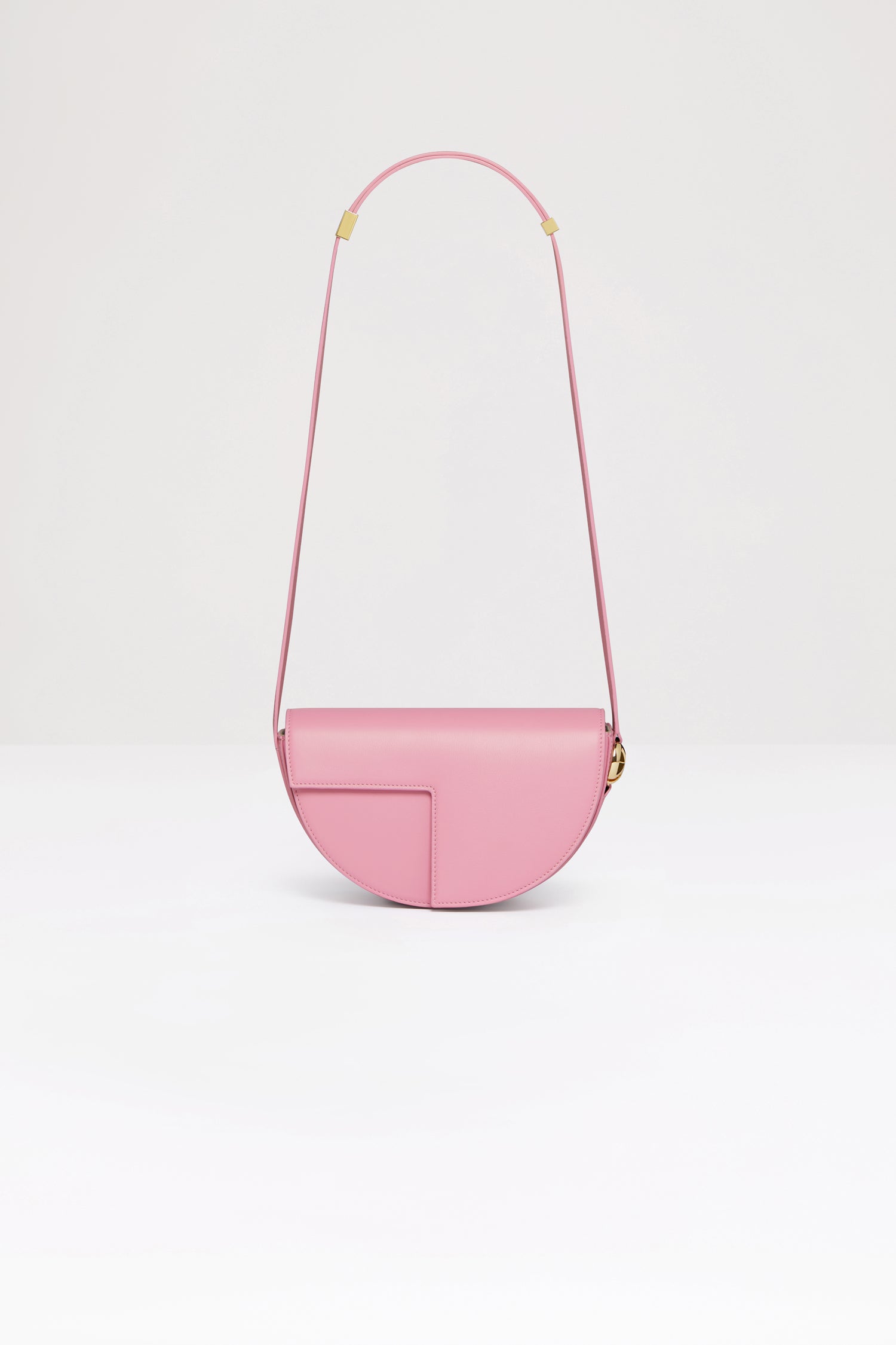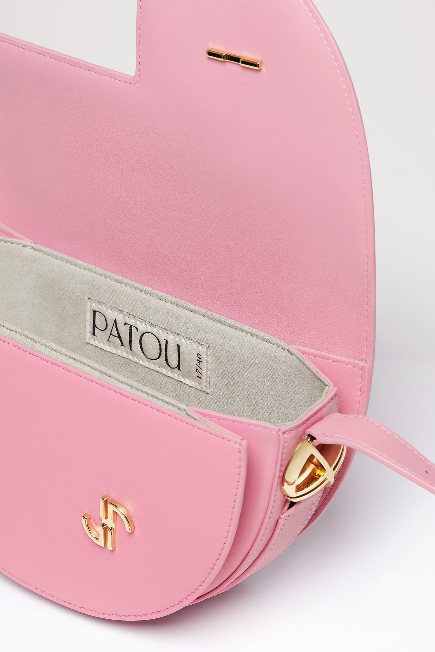 オーキッドピンクのレザーハンドバッグ。未使用レザーから持続可能な方法により調達した独自の素材で作られた限定エディション。番号入り60点限定エディション。JPモノグラムにインスピレーションを得た幾何学的なカットアウトをあしらった半円形のフォルム。サイドにゴールドトーンのメタルパーツとJPモノグラム ディテール。調整可能なストラップで、ショルダーバッグ、クロスボディバッグ、ハンドバッグとしてお使いいただけます。ゴールドトーンのJPディテールをあしらったマグネットクロージャー。内部に複数のコンパートメント。