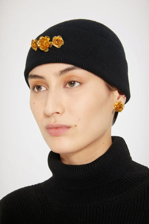 ゴールドトーンのイヤリング。フローラルシェイプ。プッシュバッククロージャー。