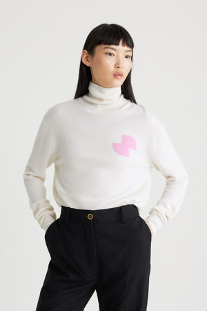 • Patou - サステナブルウール&カシミヤ JPタートルネック セーター - White - ホワイトのウール&カシミヤ製セーター。リラックス シルエット。タートルネック。胸にスタイリッシュなJPモノグラム。