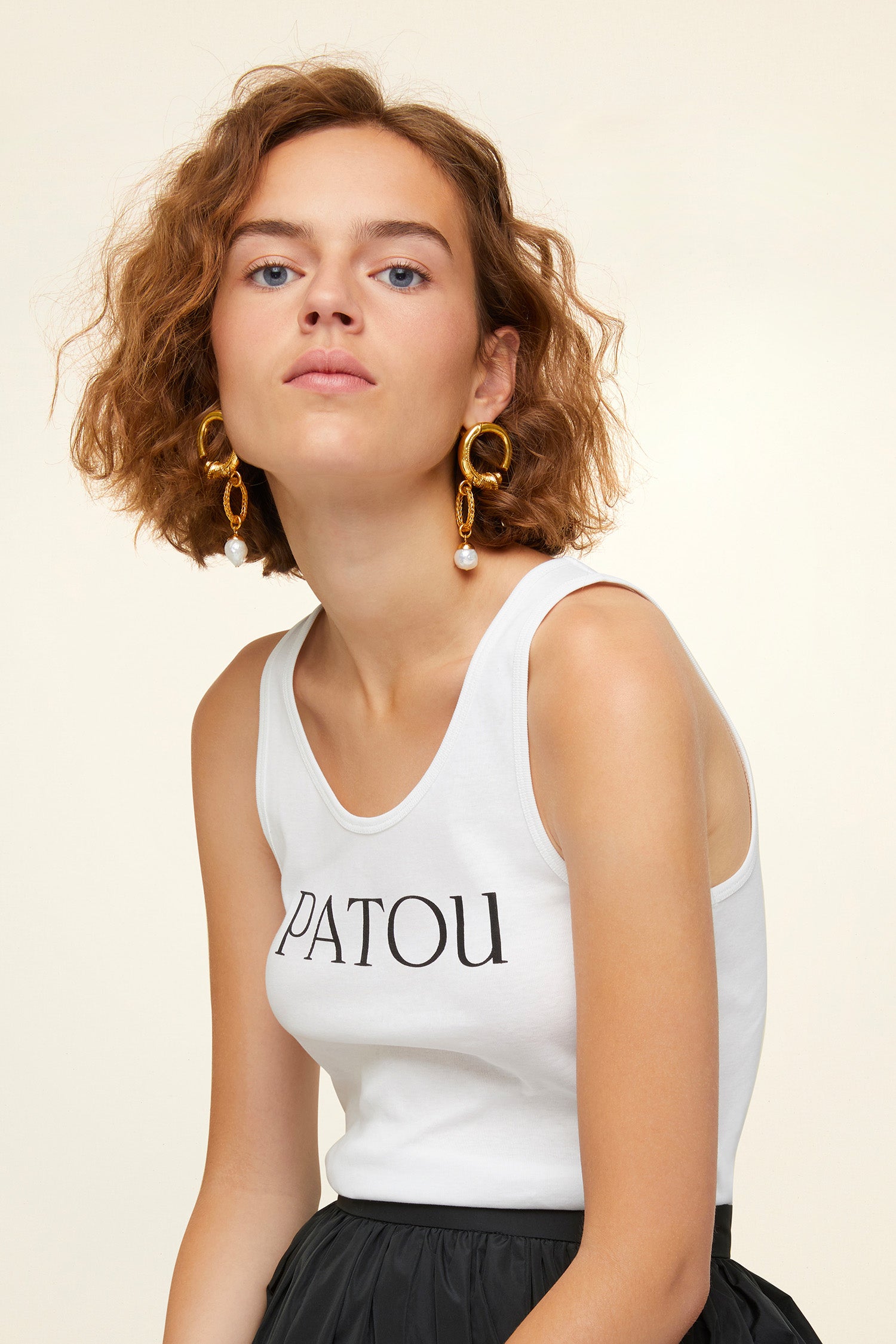 펄이 장식된 골드 도금 브라스 소재의 미니 후프 이어링