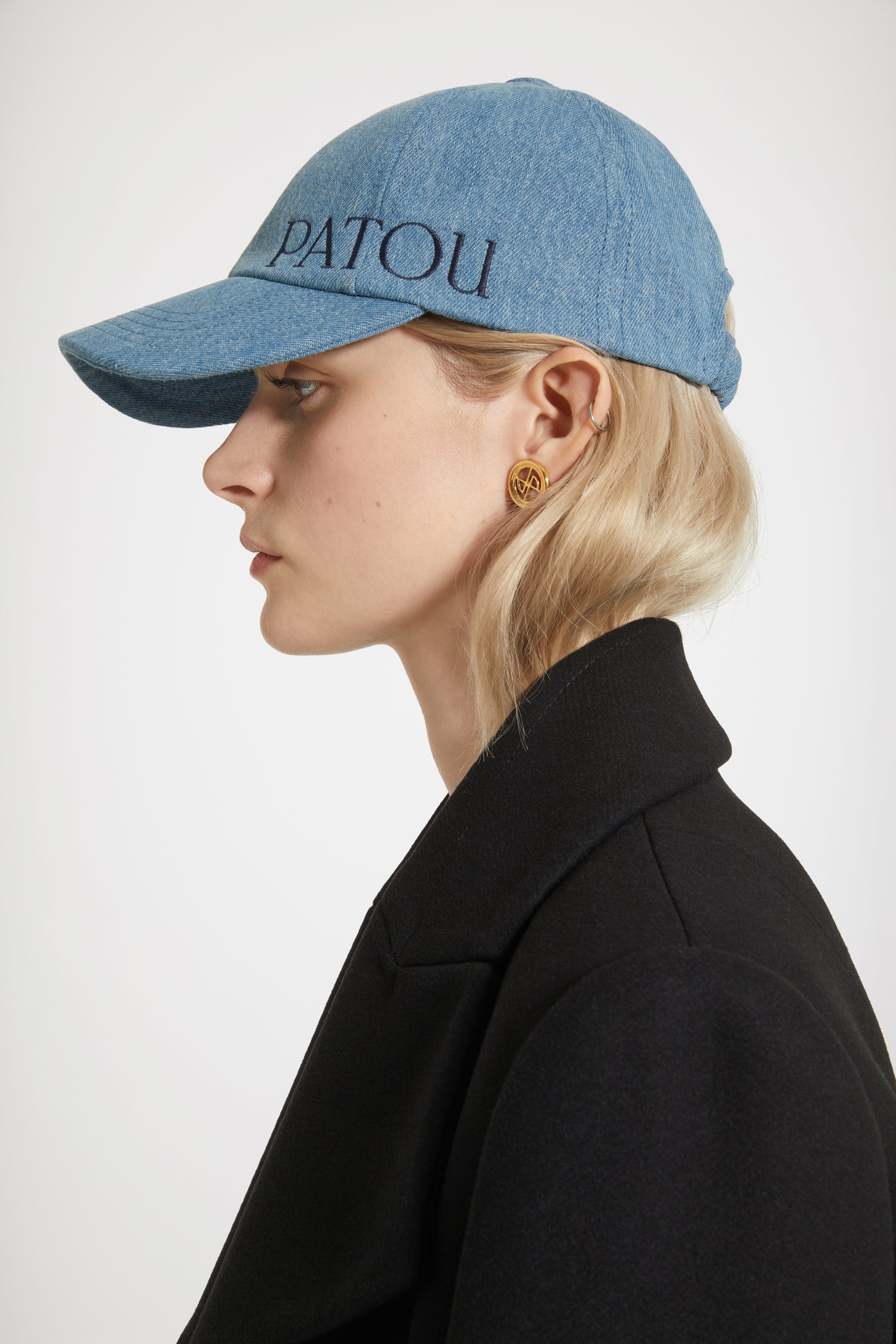 아이스 블루 컬러 오가닉 코튼 데님 소재. 지속 가능한 레이저 페이딩. 사이드의 파투 로고 자수 장식. 뒷면의 신축성 있는 스트랩. 유니섹스 스타일.