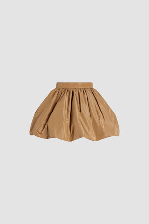 그레이 샌드 컬러의 재생 폴리에스터 파유 소재. 짧은 길이. 부풀릴 수 있는, 볼륨감 넘치는 실루엣. 하이 웨이스트. 지퍼 여밈.