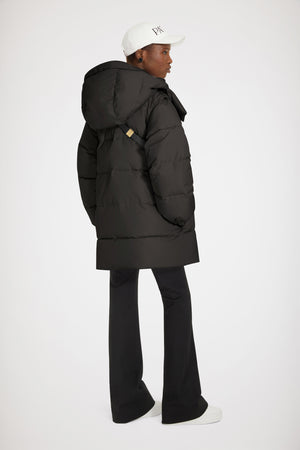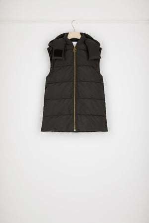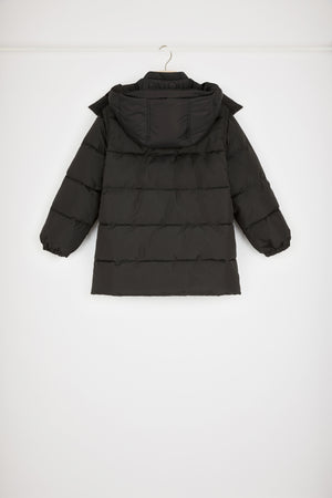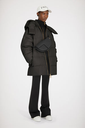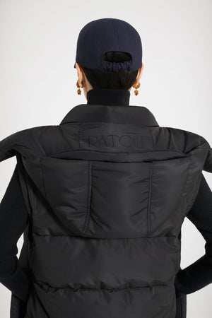 블랙 컬러의 재생 폴리아미드 소재 파카. 패딩 스타일 코트. 탈부착 가능한 슬리브로 두 가지 스타일로 연출 가능. 내부에 파투 로고 자수가 장식된 후드 달린 칼라 장 파투 아카이브의 헤리티지 키링에서 영감을 받은 JP 풀탭이 달린 골드 톤 지퍼. 측면 포켓. 신축성 있는 커프스.