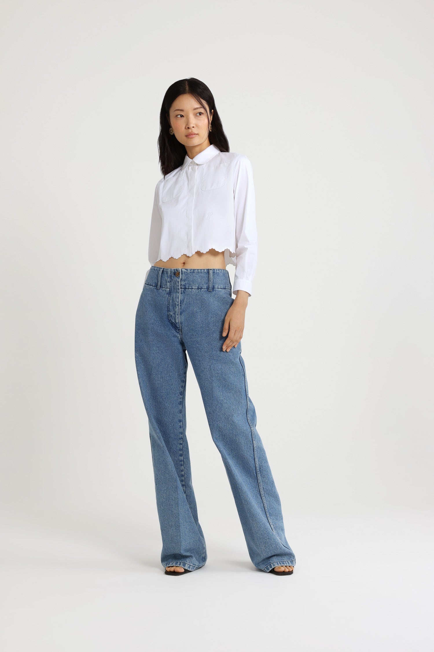 오가닉 가능한 코튼 포플린 소재 크롭 스캘럽 셔츠