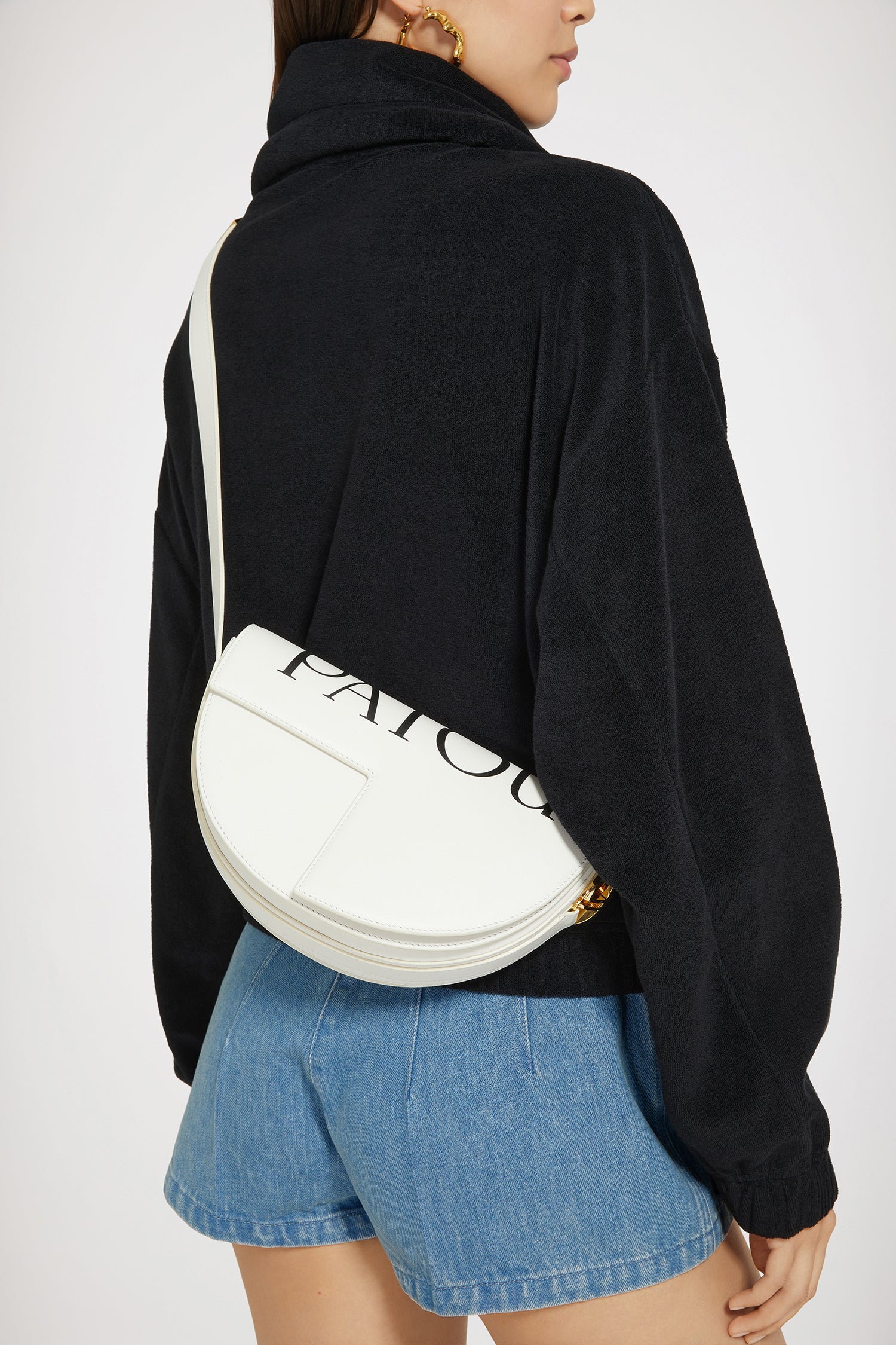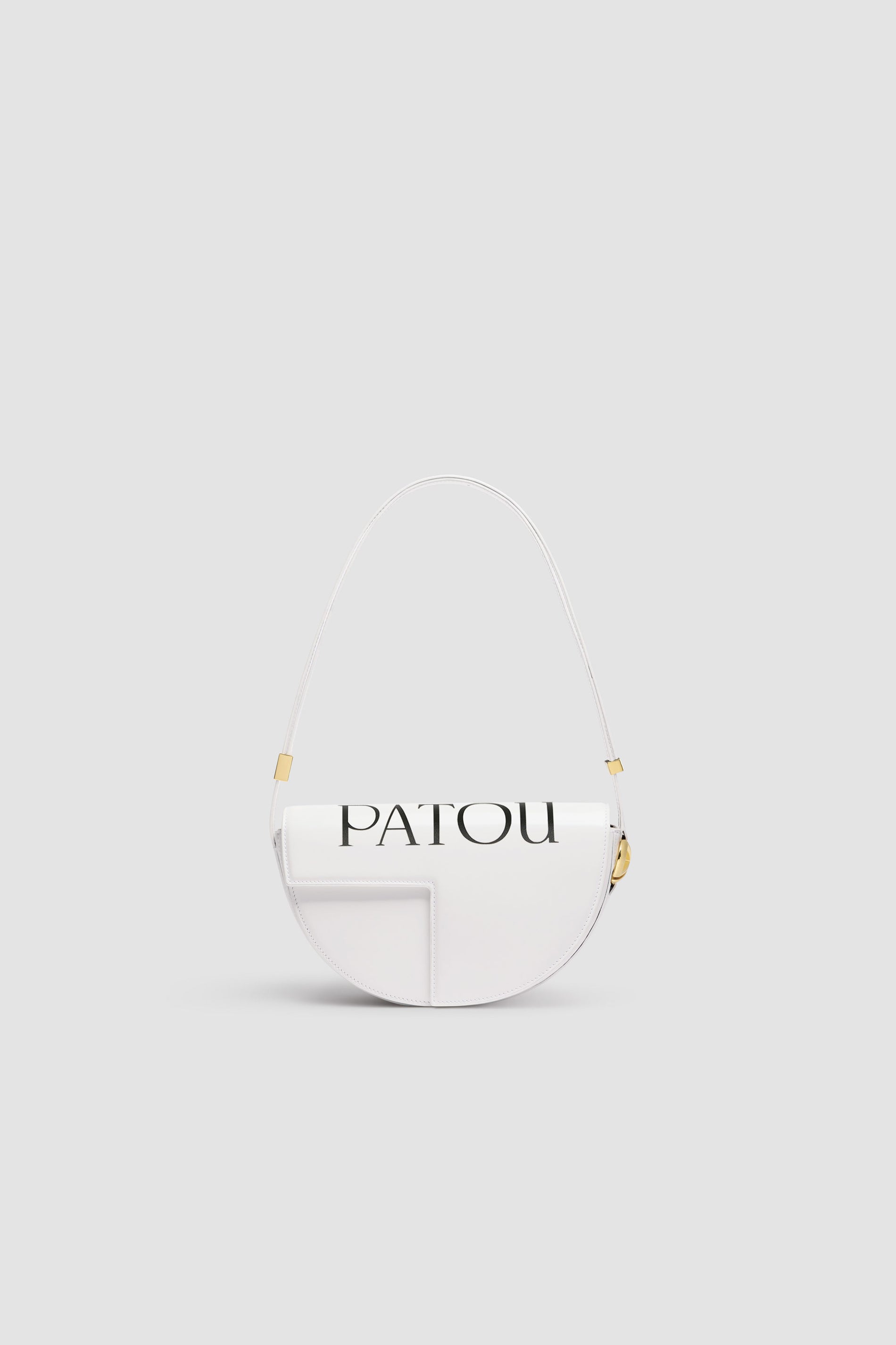 화이트 컬러의 가죽 소재. 상단의 Patou 프린트. 60점 한정 생산 리미티드 에디션. JP 모노그램에서 영감을 받은 기하학적 컷아웃이 돋보이는 반원형 실루엣. 측면의 JP 모노그램 디테일 골드 톤 하드웨어. 길이 조절 가능한 스트랩으로 숄더백, 크로스백, 또는 토트백 스타일로 연출 가능. 골드 톤 JP 디테일의 자석 잠금. 여러 내부 수납공간. 에코 내부 마감.