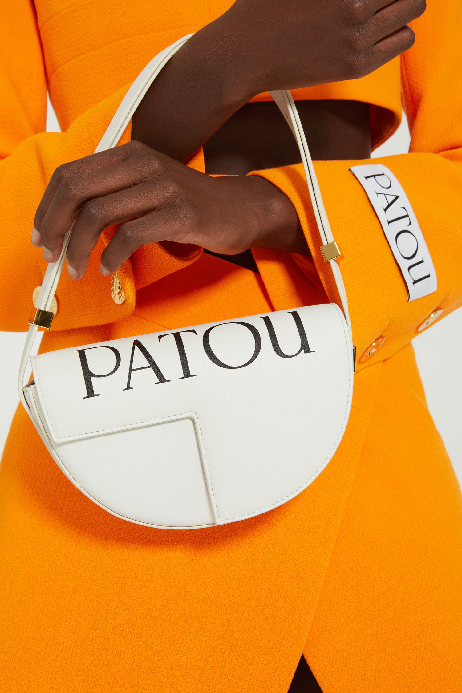 화이트 컬러의 가죽 소재. 상단의 Patou 프린트. 100점 한정 생산 리미티드 에디션. JP 모노그램에서 영감을 받은 기하학적 컷아웃이 돋보이는 반원형 실루엣. 측면의 Patou가 새겨진 골드 톤 하드웨어. 길이 조절 가능한 스트랩으로 숄더백, 크로스백, 또는 토트백 스타일로 연출 가능. 골드 톤 JP 디테일의 자석 잠금. 내부 수납공간. 에코 내부 마감.