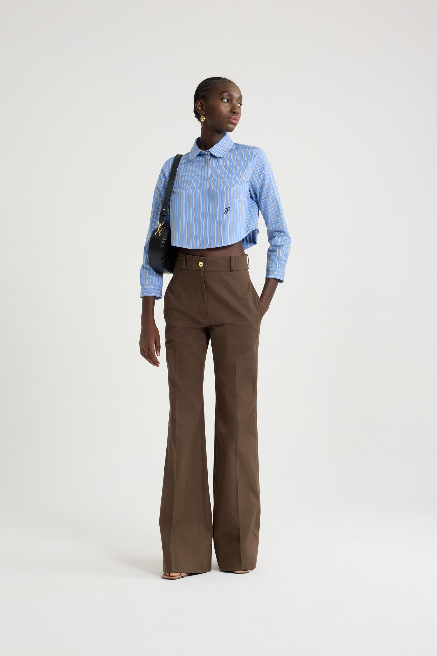 프린트 장식 오가닉 코튼 포플린 소재 크롭 셔츠